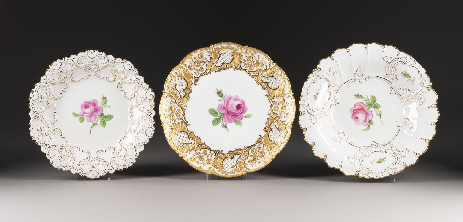 DREI MEISSENER PRUNKTELLER 'ROTE ROSE'