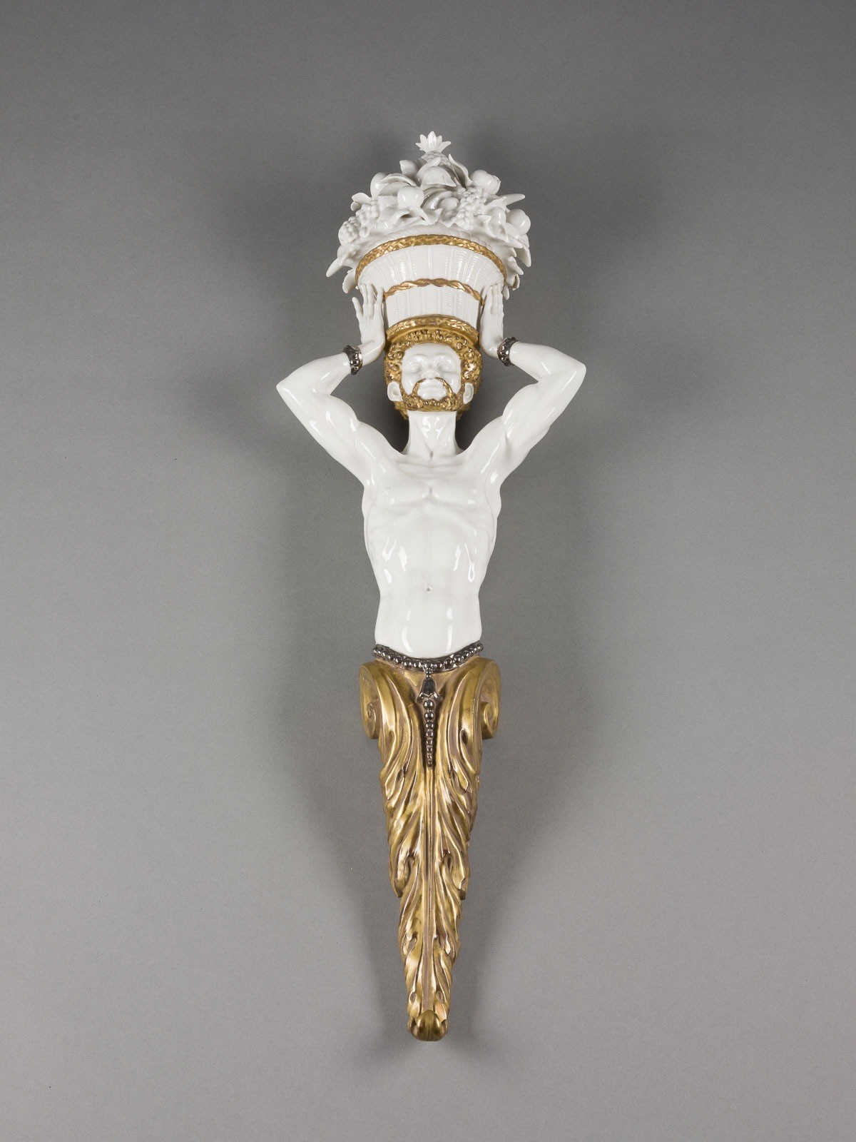 Weissporzellan, braun bemalt, Gold- und Silberdekor. H. 66,5 cm. Firmenmarke 'Algora/Made in Spain', Modellnr. 'T.371'. Ein Blatt min. rest.