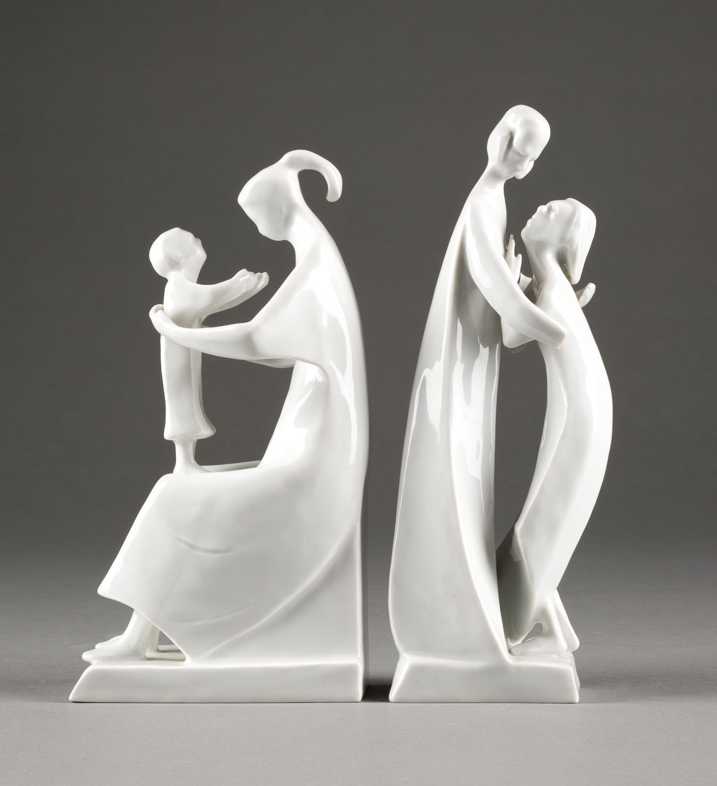 Weissporzellan, glasiert. H. 21-22 cm. Unterglasurblaue Schwertermarke, Weißzeichen, Pressnummer, Jahreszeichen, Modellnr. 'T207' und 'T208'. 1./2. Wahl. Hand besch.