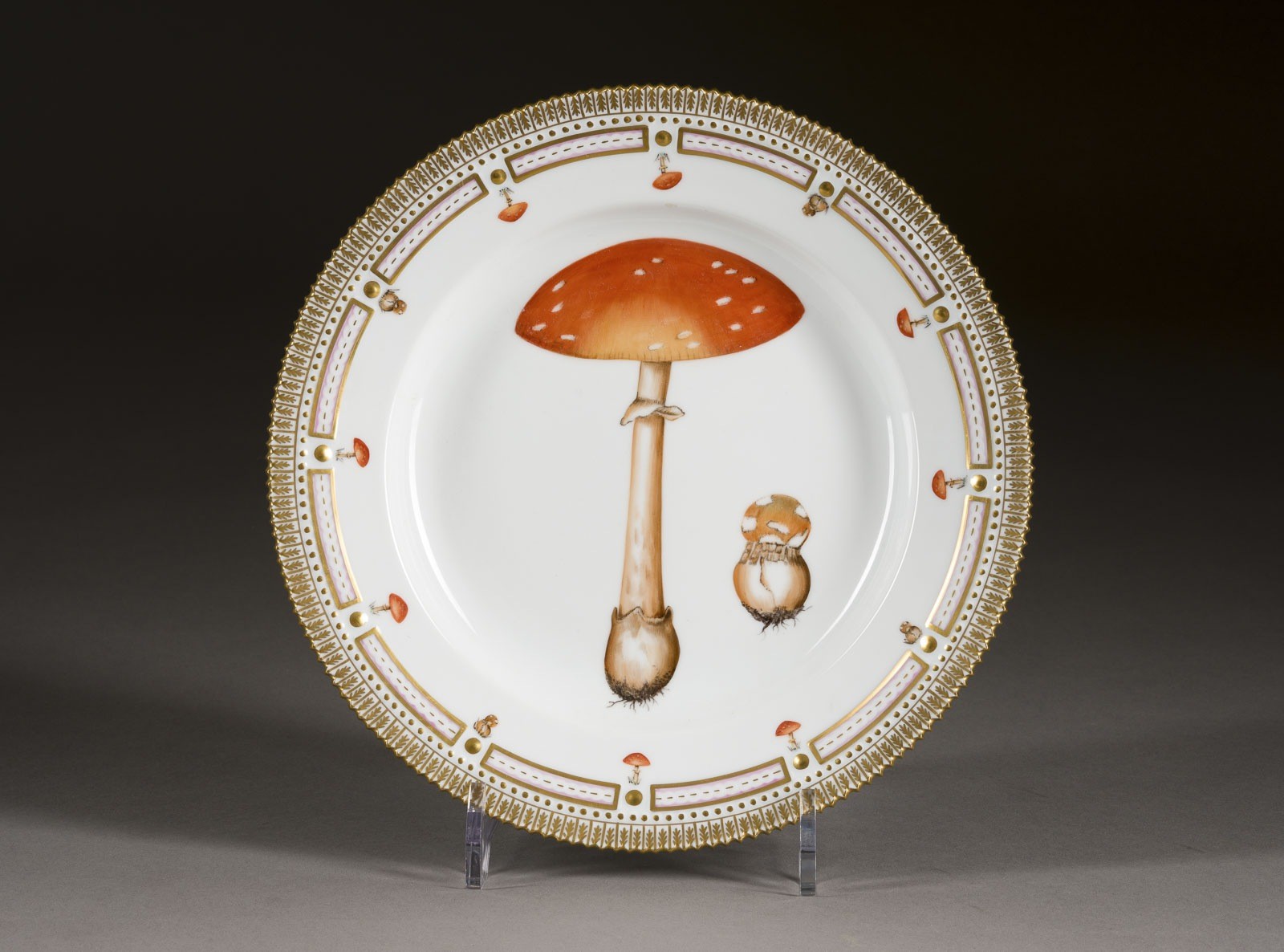 Porzellan, polychrome Malerei, Goldstaffage. D. 24,5 cm. Grüne Manufakturmarke, blaue Wellenmarke, Malerzeichen, Modellnr. '624'. Verso bez. mit botanischen Namen in Schwarz. 1. Wahl.