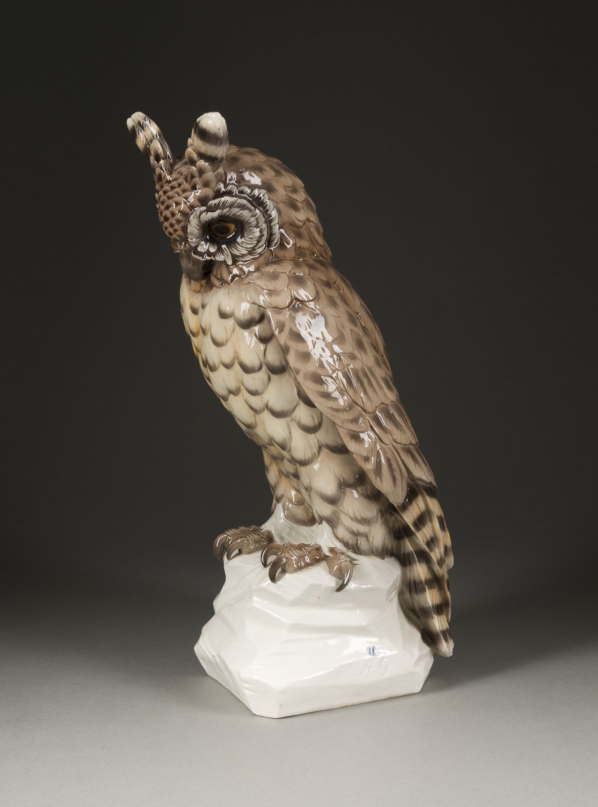 Porzellan, polychrom gefasst. H. 43 cm. Unterglasurblau Blindstempel (schauseitig), auf der Bodenunterseite grüner Manufakturstempel, Blindstempel Modellnr. '623', monogrammiert 'A.G'.