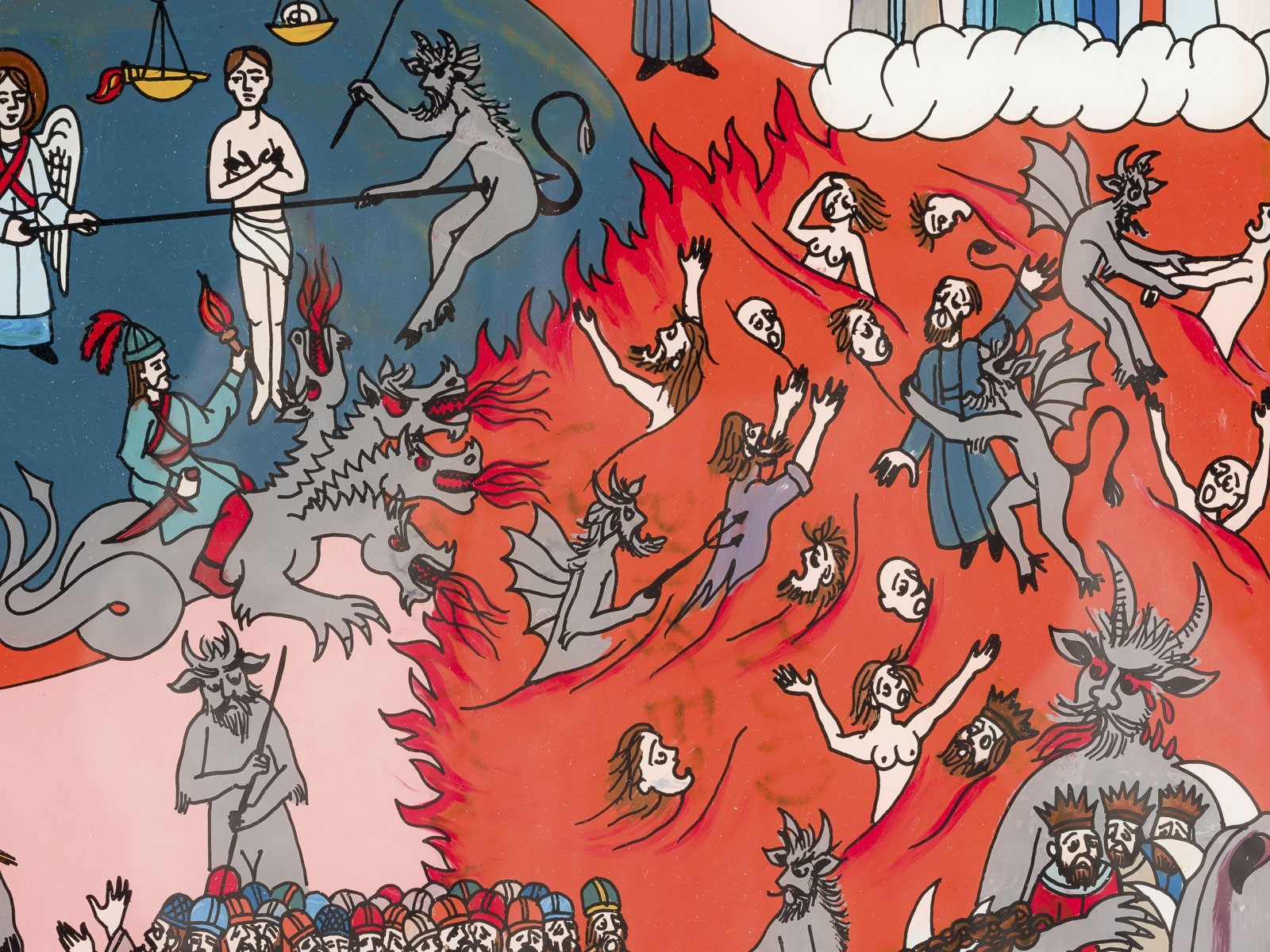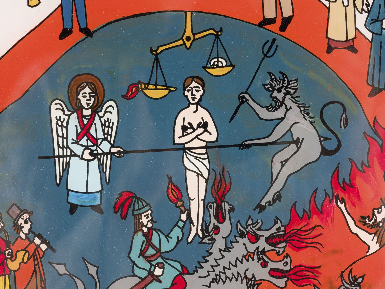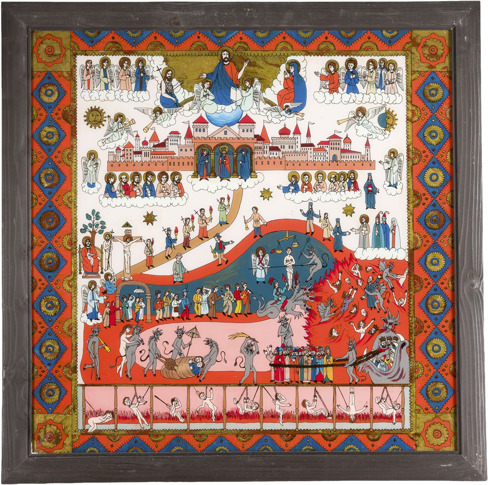 GROSSFORMATIGE HINTERGLAS-IKONE MIT DEM JÜNGSTEN GERICHT