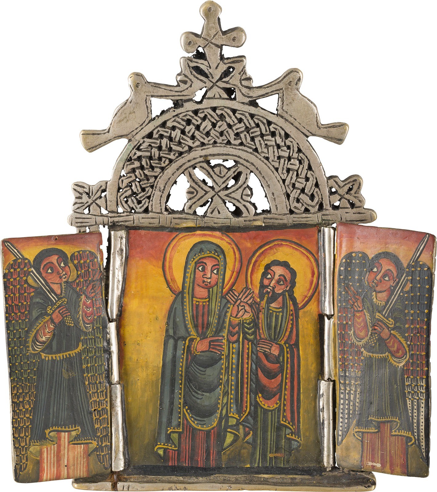 KOPTISCHES TRIPTYCHON MIT DEN VON ERZENGELN FLANKIERTEN GOTTESMUTTER UND CHRISTUS