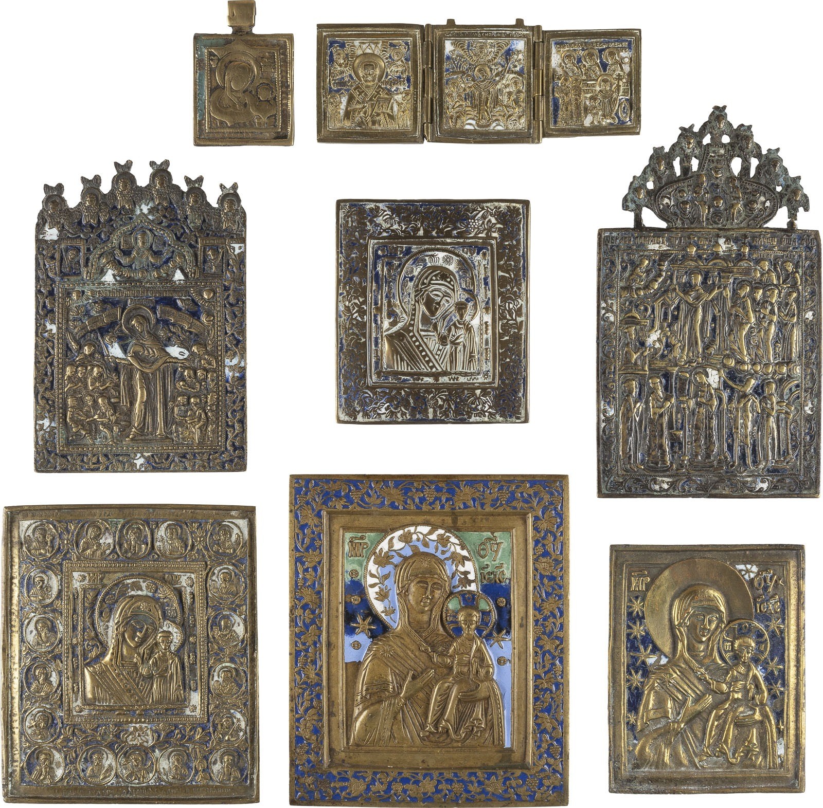 SAMMLUNG VON ACHT BRONZE-IKONEN MIT DARSTELLUNGEN DER GOTTESMUTTER