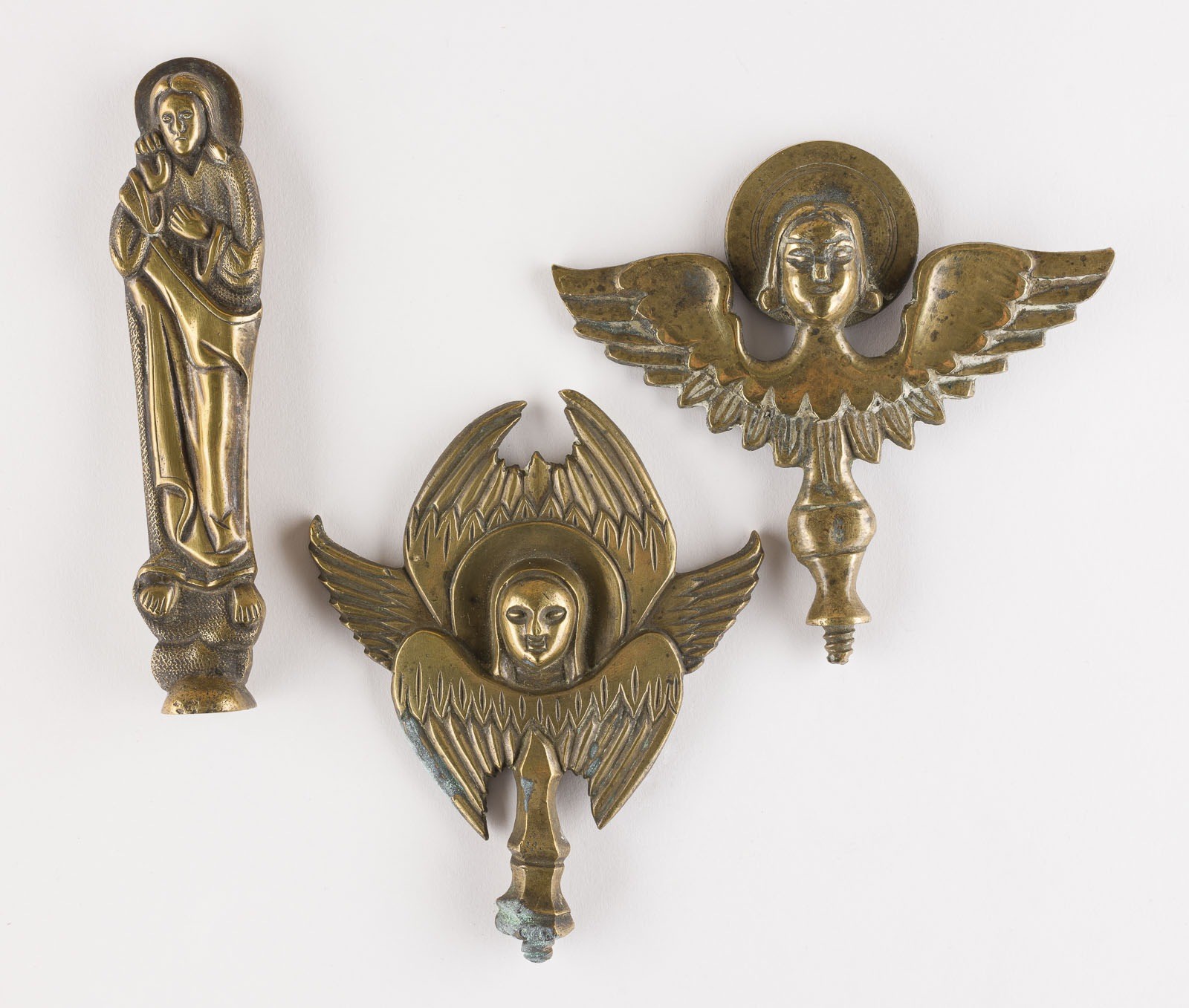Bronze, reliefiert gegossen, teils mehrfarbig emailliert. H. 9,8-26,3 cm. Email part. best.