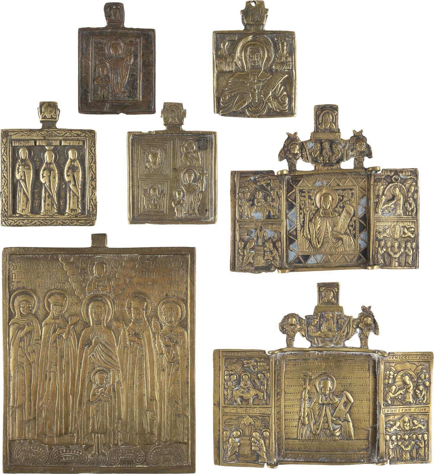 SAMMLUNG VON SIEBEN BRONZE-IKONEN MIT AUSGEWÄHLTEN HEILIGEN