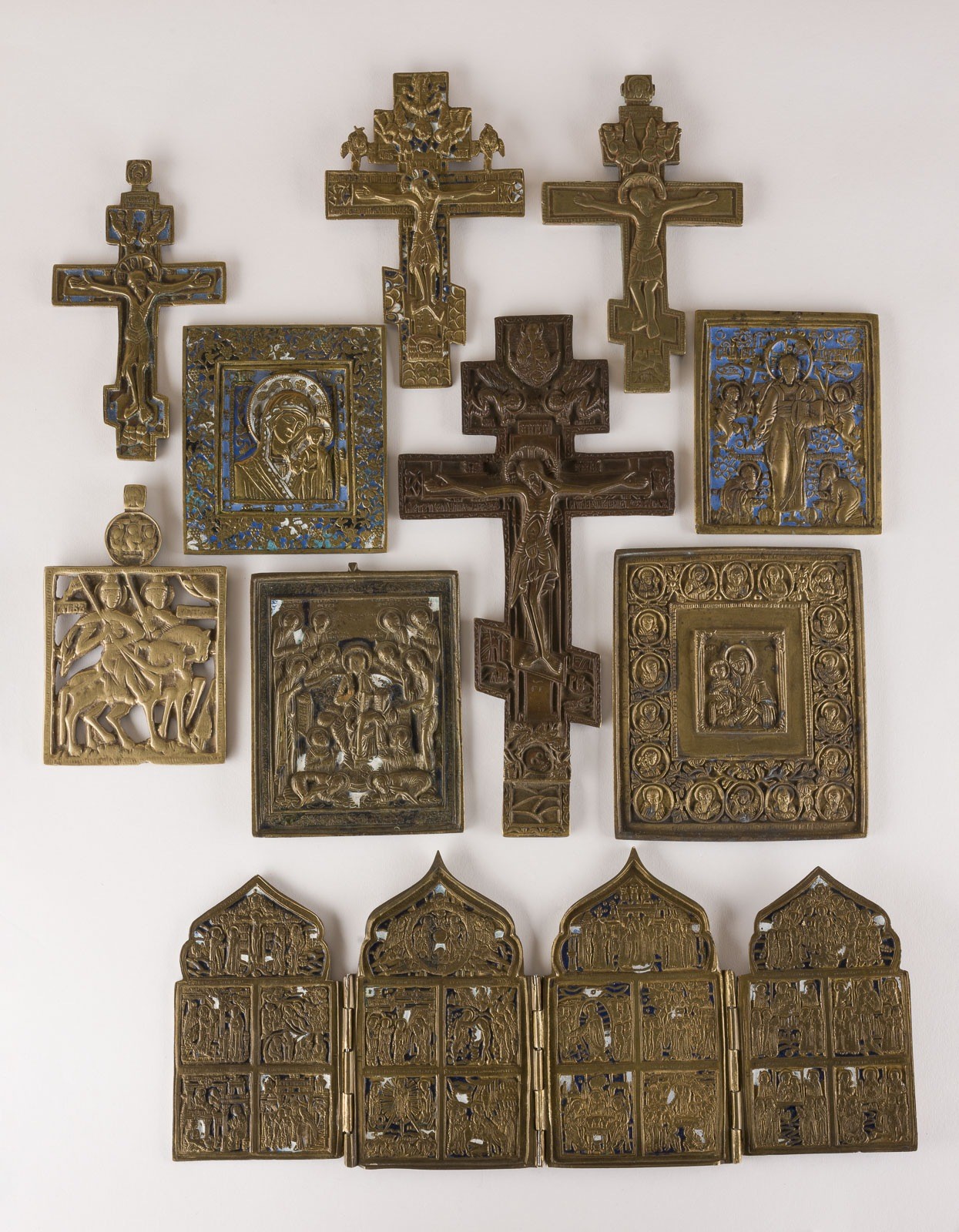 SAMMLUNG VON ZEHN BRONZE-IKONEN: DARSTELLUNGEN CHRISTI UND DER GOTTESMUTTER, HEILIGE BORIS UND GLEB SOWIE FESTTAGE