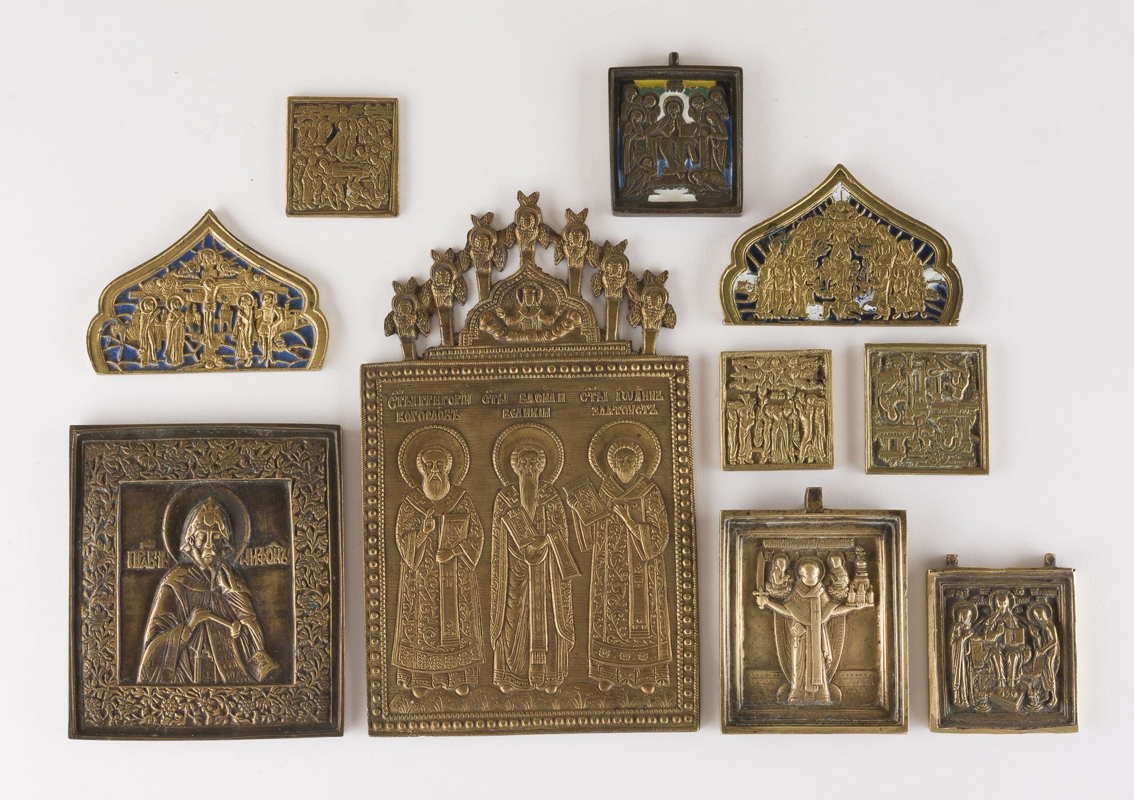 SAMMLUNG VON ZEHN BRONZE-IKONEN: DEESIS, AUSGEWÄHLTE HEILIGE SOWIE FESTTAGE