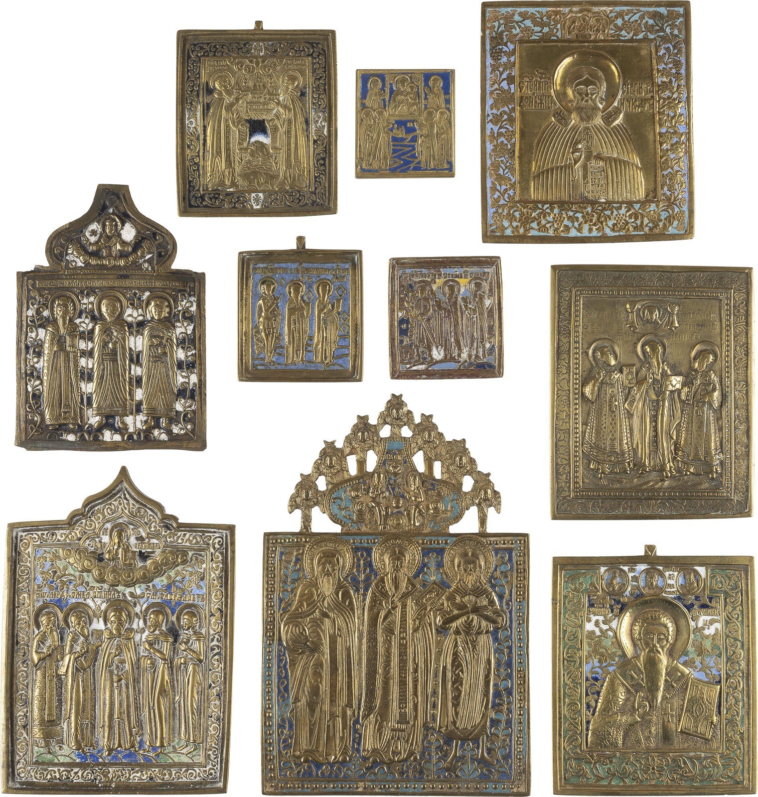 SAMMLUNG VON ZEHN BRONZE-IKONEN MIT AUSGEWÄHLTEN HEILIGEN