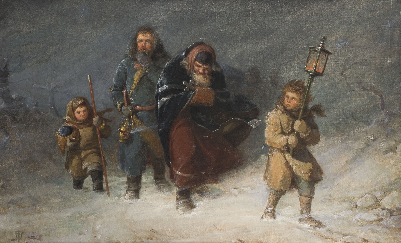 Öl auf Leinwand. 61,5 x 96,5 cm (R. 79 x 114,5 cm). Unten links in Kyrillisch monogrammiert 'IT'. I.P. Trutnew - Genre- und Ikonenmaler sowie Kunstpädagoge - studierte an der Kaiserlichen