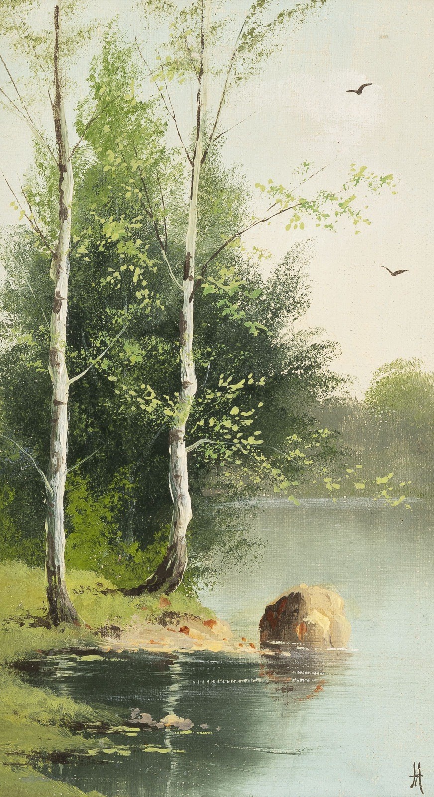 Öl auf Leinwand maroufliert auf Platte. 14,5 x 16 cm/15 x 16 cm (R. jew. 34 x 35 cm). Jew. unten monogrammiert. Part. Retuschen.