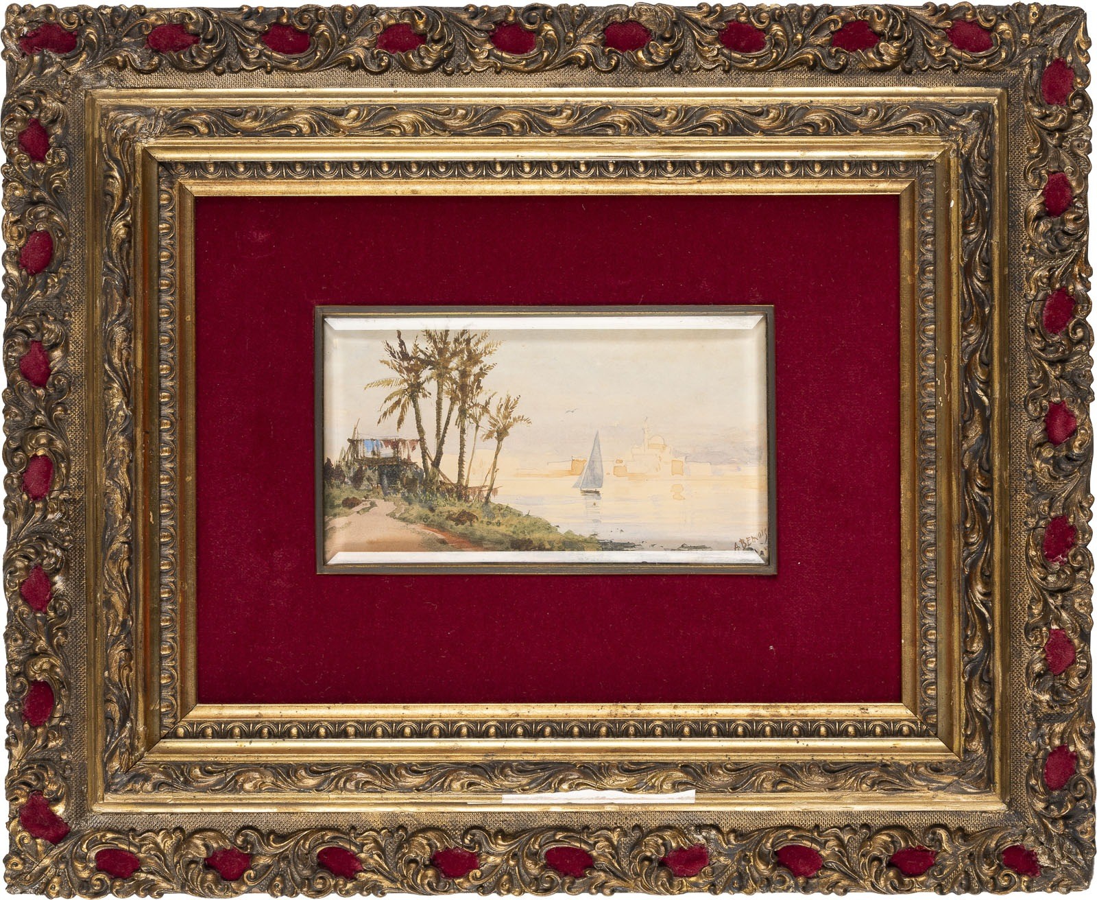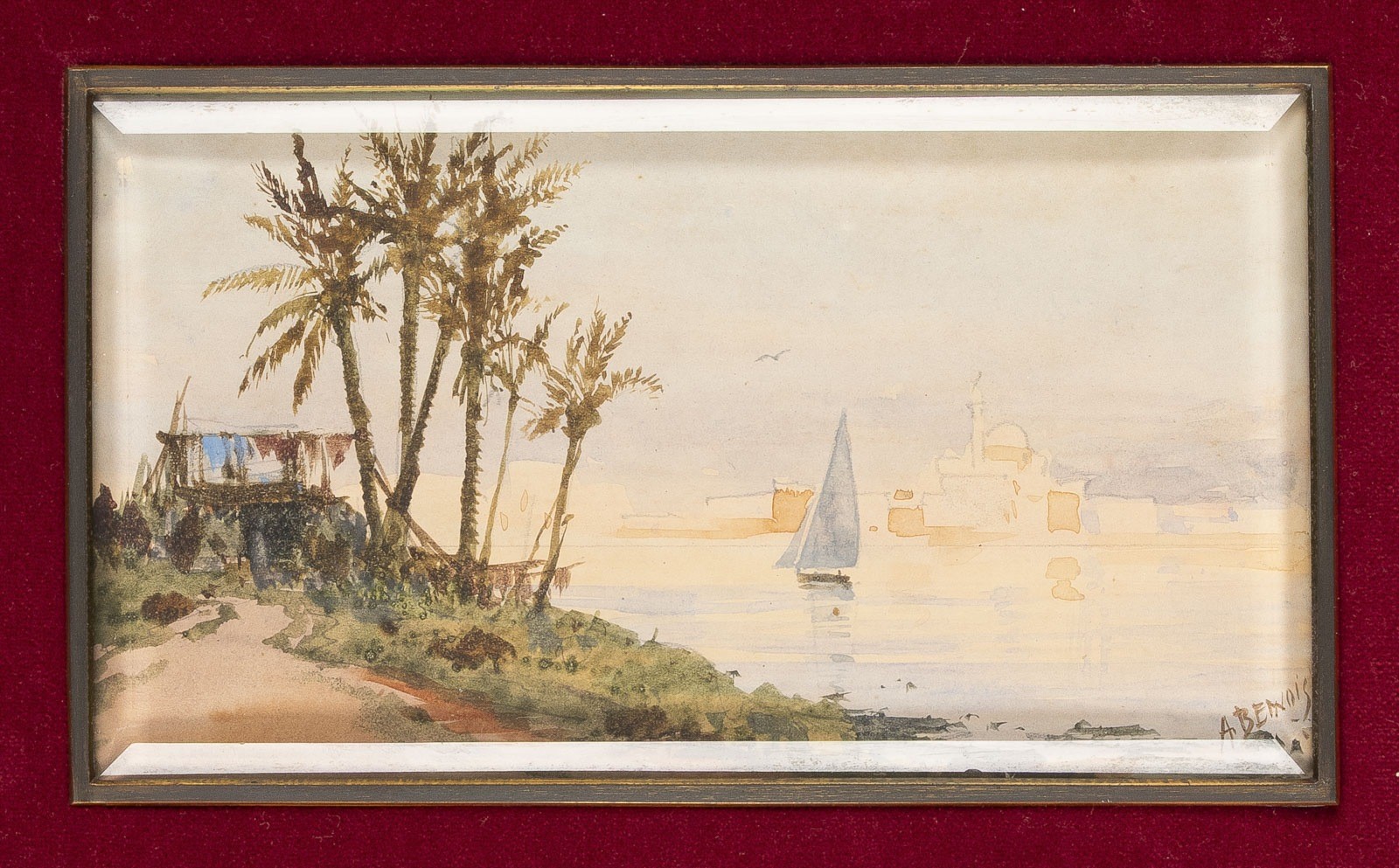Aquarell auf Papier. SM 9 x 15,5 cm (R. 31 x 38,5 cm). Hinter Glass gerahmt (verso verschlossen, ungeöffnet). Unten rechts bez. 'A. Benois'. Min. gebräunt.