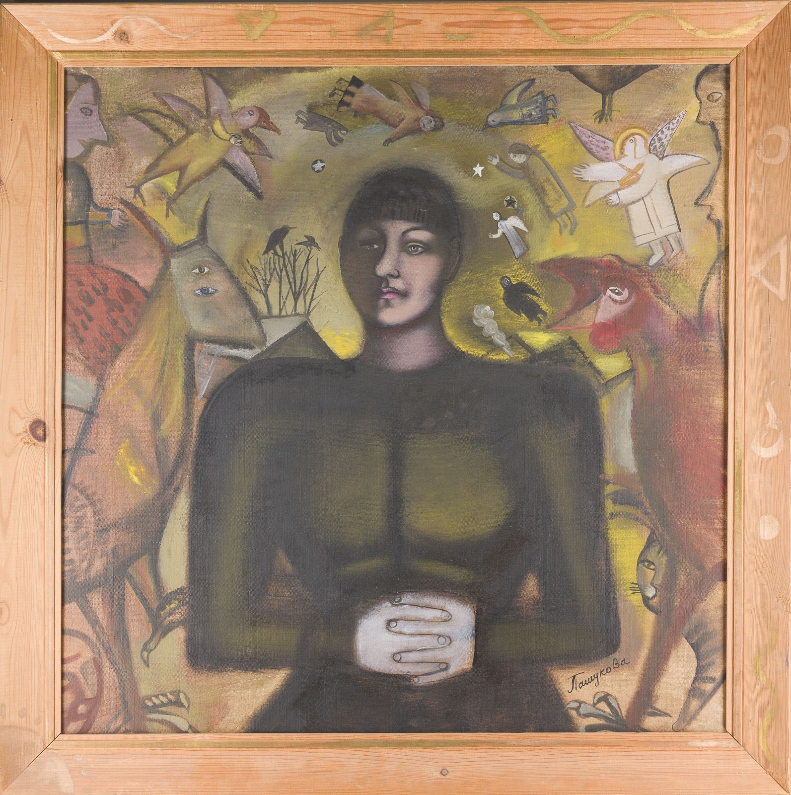 Öl auf Leinwand. 80 x 80 cm (R. 93,5 x 93,5 cm). Unten rechts in Kyrillisch signiert 'Paschukowa'. Verso: in Kyrillisch bez., betitelt und datiert.