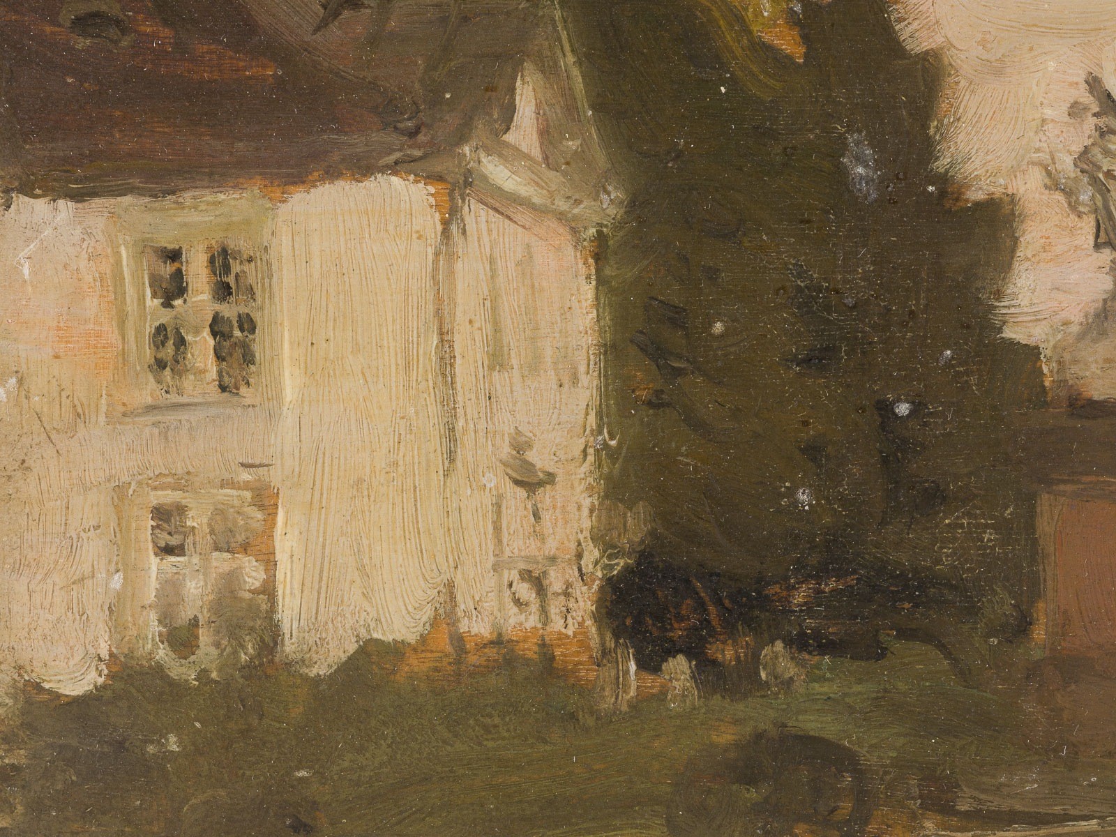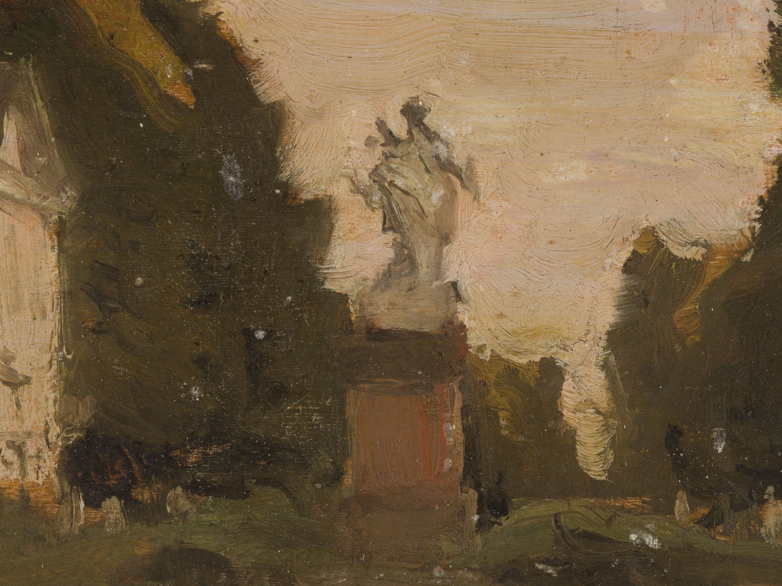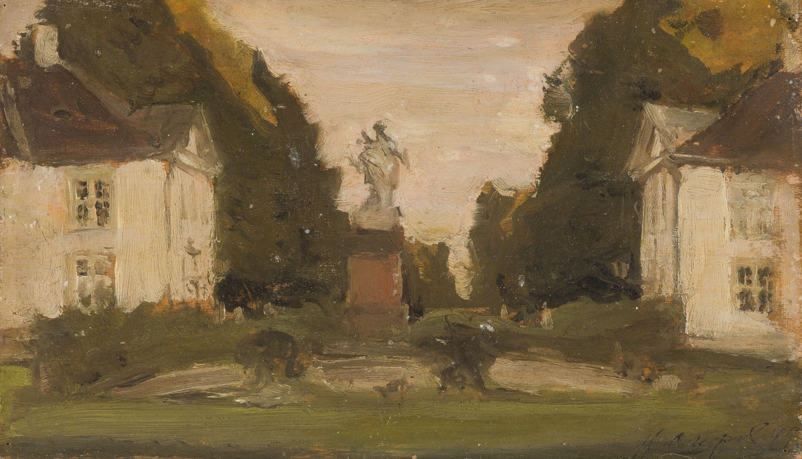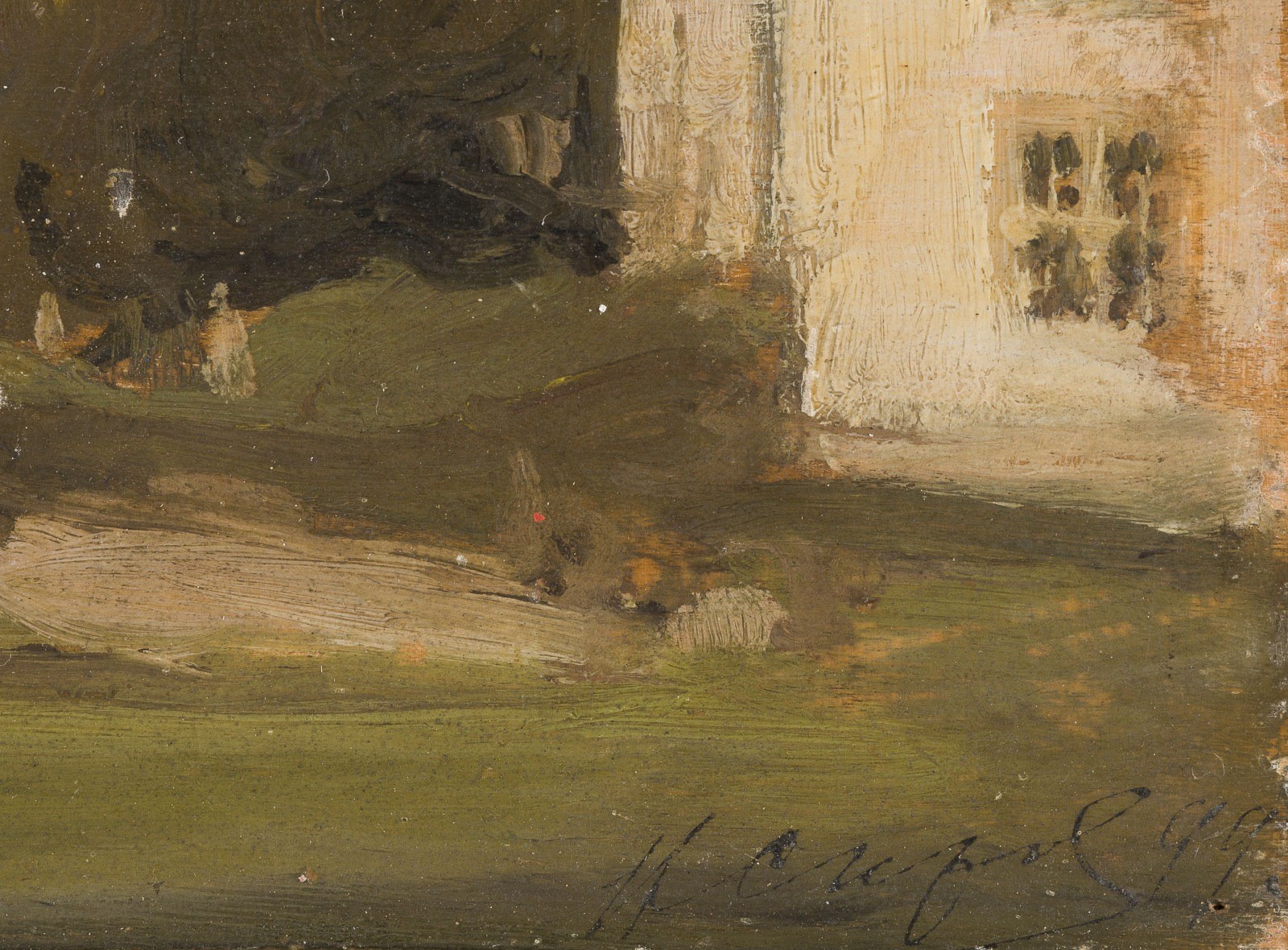 Öl auf Platte. 12,5 x 21,5 cm (R. 23 x 32 cm). Hinter Glas gerahmt. Unten rechts in Kyrillisch signiert und datiert 'Serow 99'. Verso: auf Französisch bez. 'Le château de Fredensborg de Copenhague, étude de mon défunt
