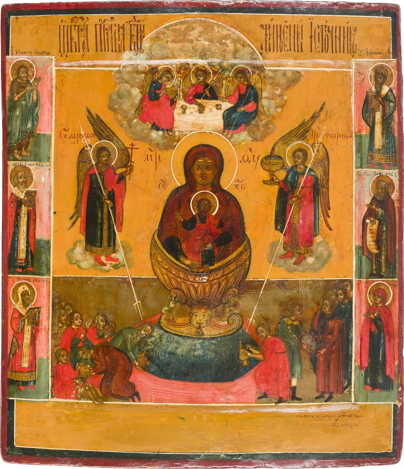 DATIERTE IKONE MIT DER GOTTESMUTTER 'LEBENSSPENDENDE QUELLE'