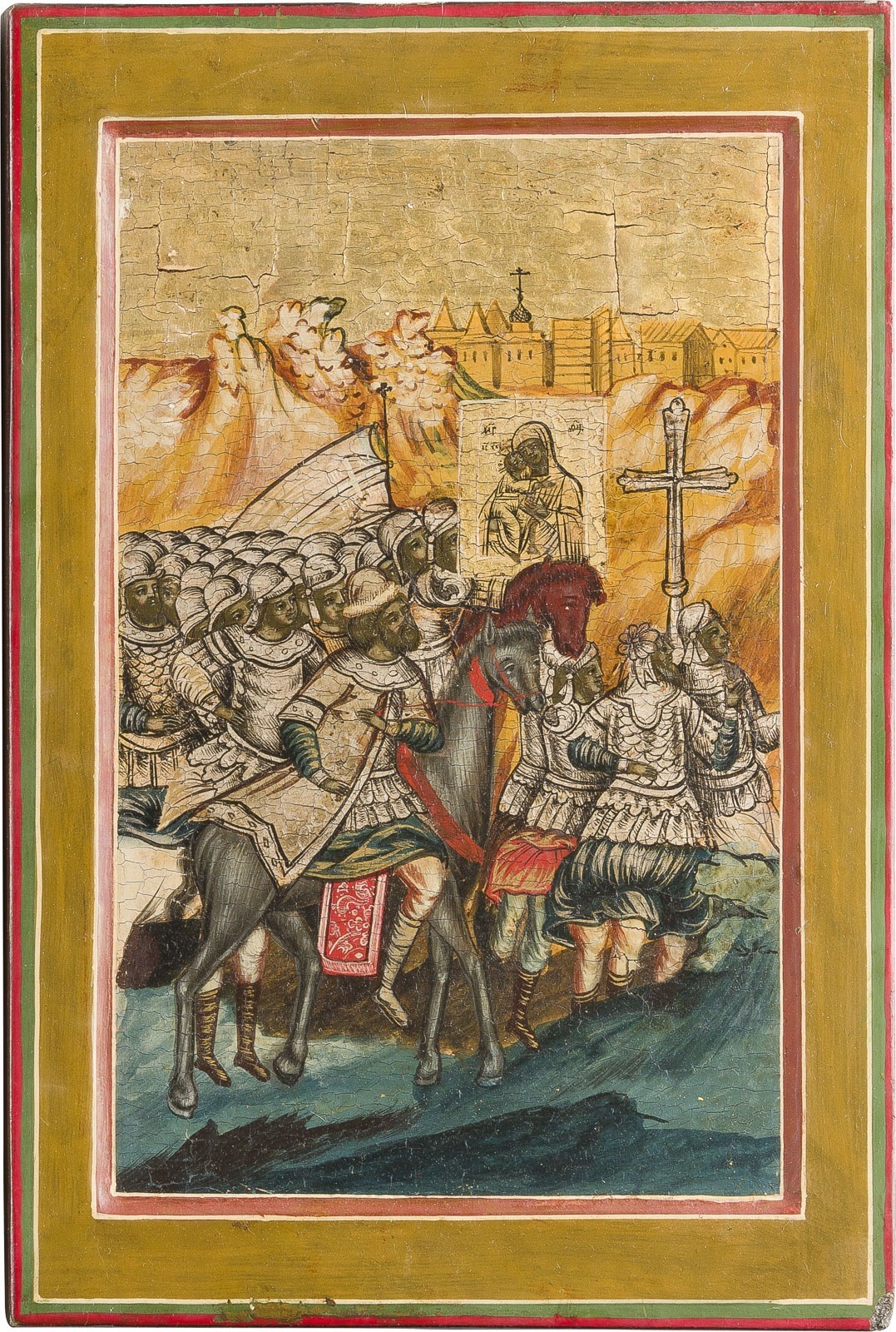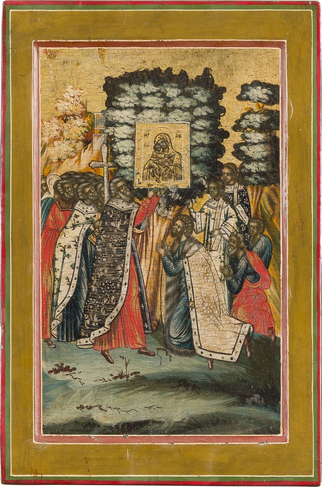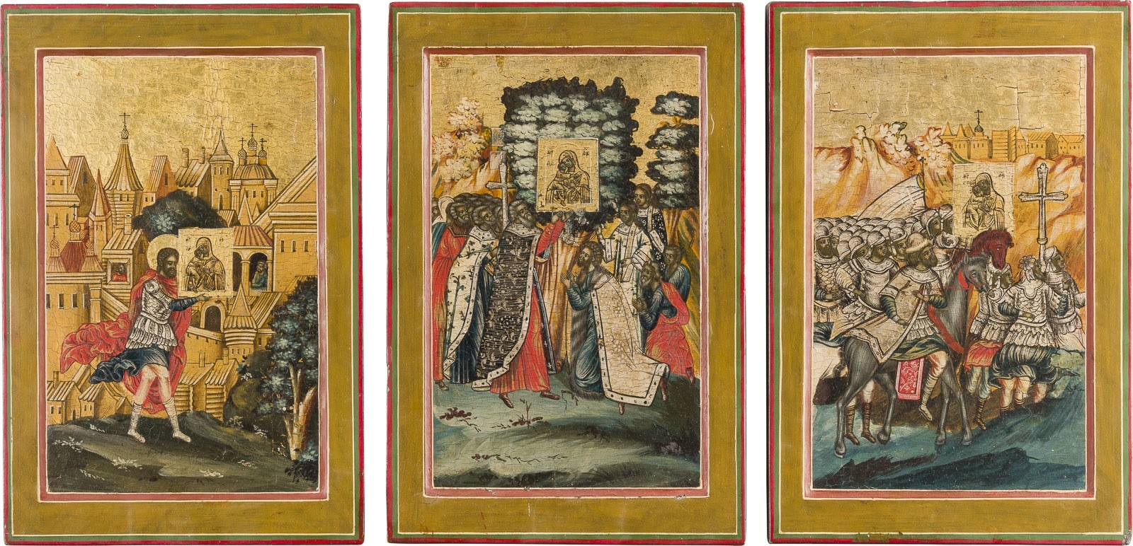 DREI IKONEN MIT DER LEGENDE DER WUNDERTÄTIGEN IKONE MIT DER GOTTESMUTTER FEODOROWSKAJA