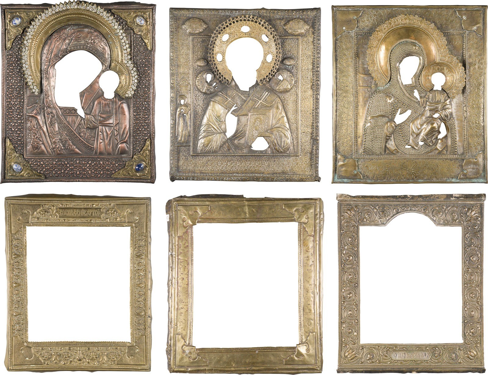 DREI IKONEN-OKLAD UND DREI BASMEN