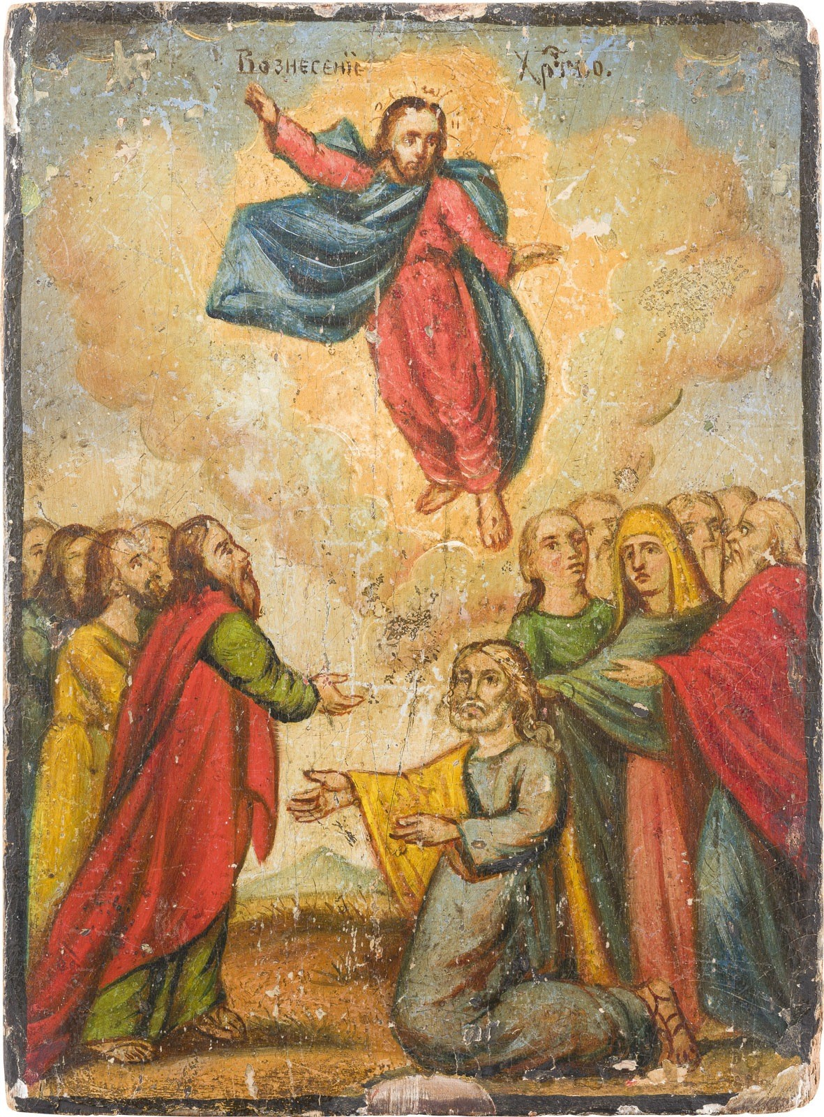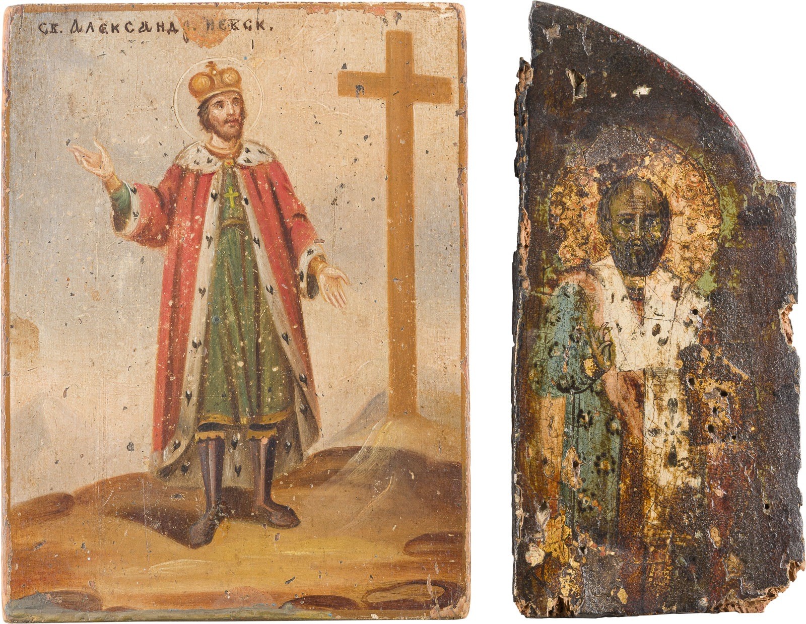 DREI KLEINE IKONEN: HEILIGER NIKOLAUS VON MYRA, HEILIGER ALEXANDER NEWSKI UND HIMMELFAHRT CHRISTI
