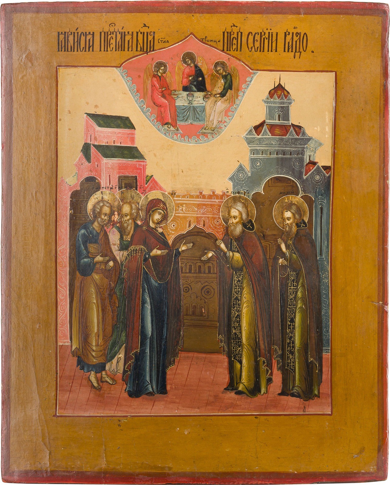 FEINE IKONE MIT DEM ERSCHEINEN DER GOTTESMUTTER VOR DEM HEILIGEN SERGEJ VON RADONESCH