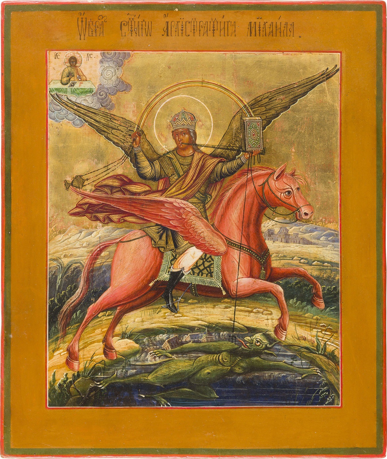 FEINE IKONE MIT DEM ERZENGEL MICHAEL ARCHISTRATEGOS ALS APOKALYPTISCHER REITER