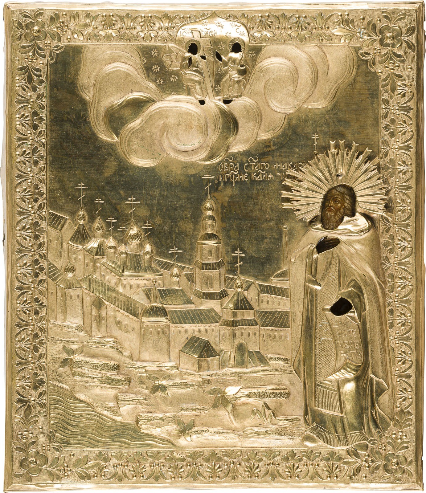 FEINE IKONE MIT DEM HEILIGEN MAKARIJ KALJAZINSKIJ MIT OKLAD