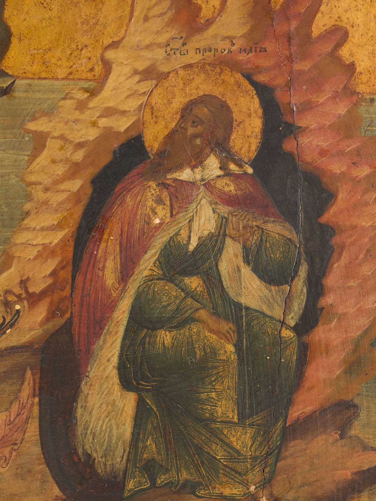 FEINE IKONE MIT DEM PROPHETEN ELIAS, SEINEM LEBEN IN DER WÜSTE UND SEINER FEURIGEN HIMMELFAHRT
