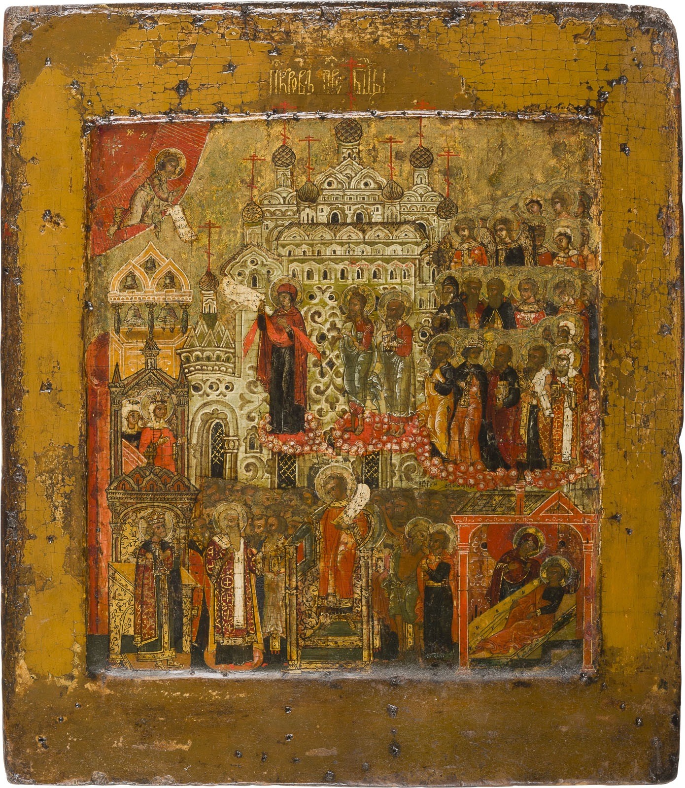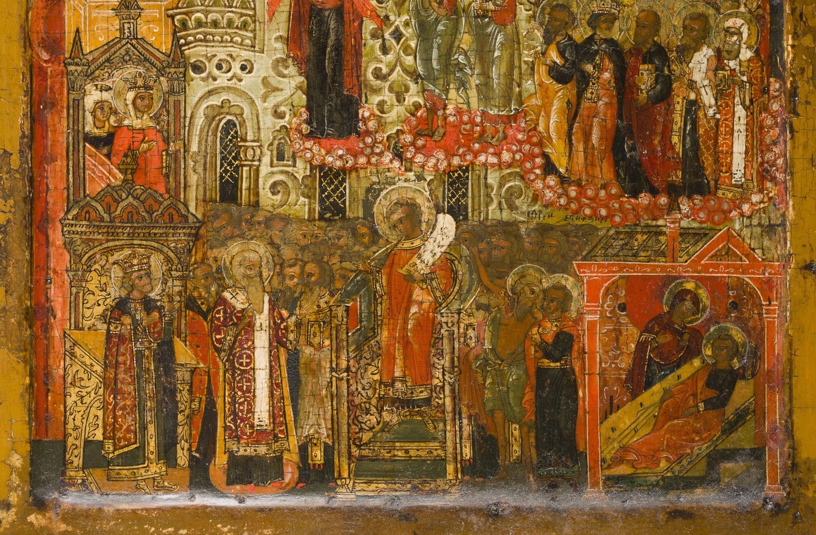FEINE IKONE MIT DEM SCHLEIERWUNDER DER GOTTESMUTTER (POKROW)