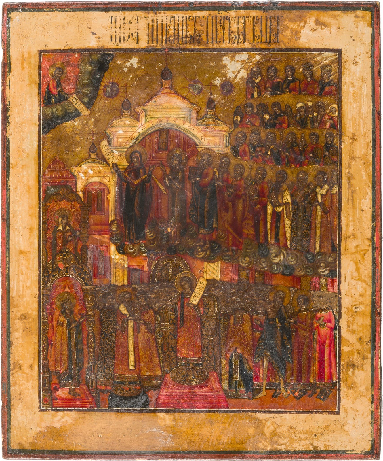 FEINE IKONE MIT DEM SCHLEIERWUNDER DER GOTTESMUTTER (POKROW)