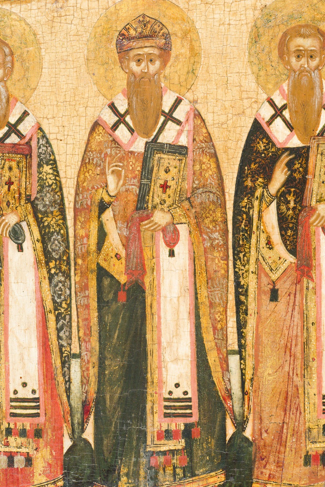 FEINE IKONE MIT DEN DREI HEILIGEN HIERARCHEN BASILIOS DEM GROSSEN, GREGORIOS DEM THEOLOGEN UND JOHANNES CHRYSOSTOMUS