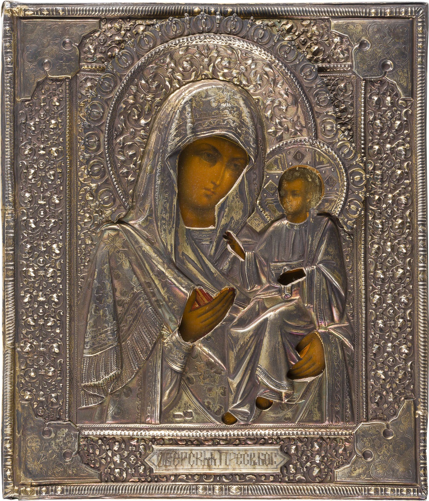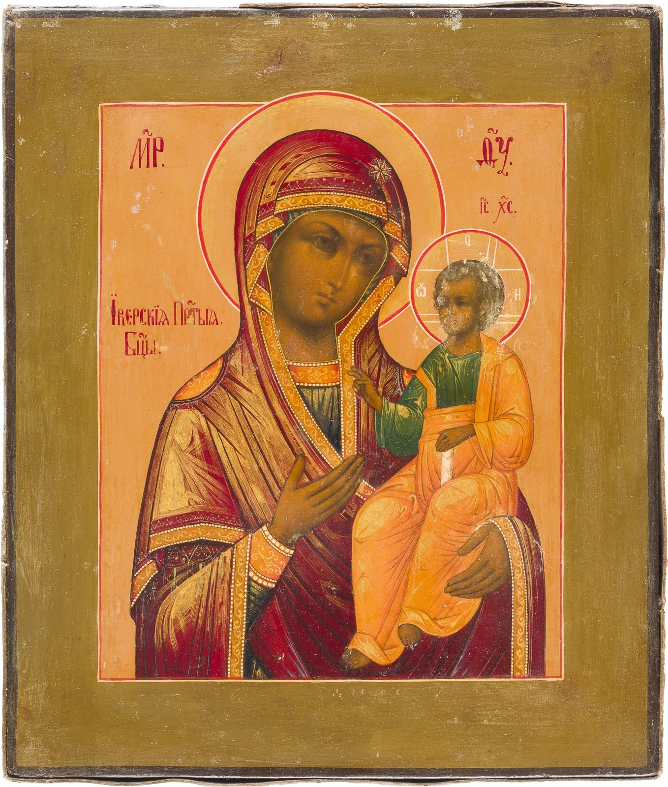 FEINE IKONE MIT DER GOTTESMUTTER 'IWERSKAJA' MIT VERMEIL-OKLAD