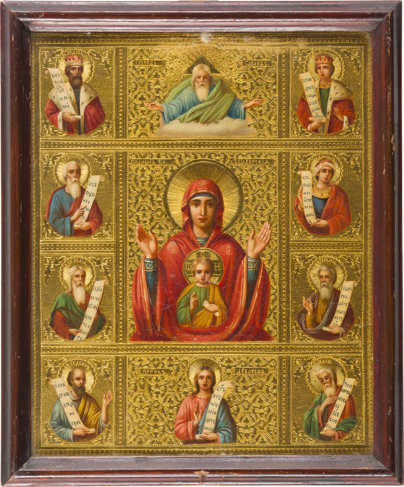 FEINE IKONE MIT DER GOTTESMUTTER VON KURSK (KURSKAJA) IM KIOT