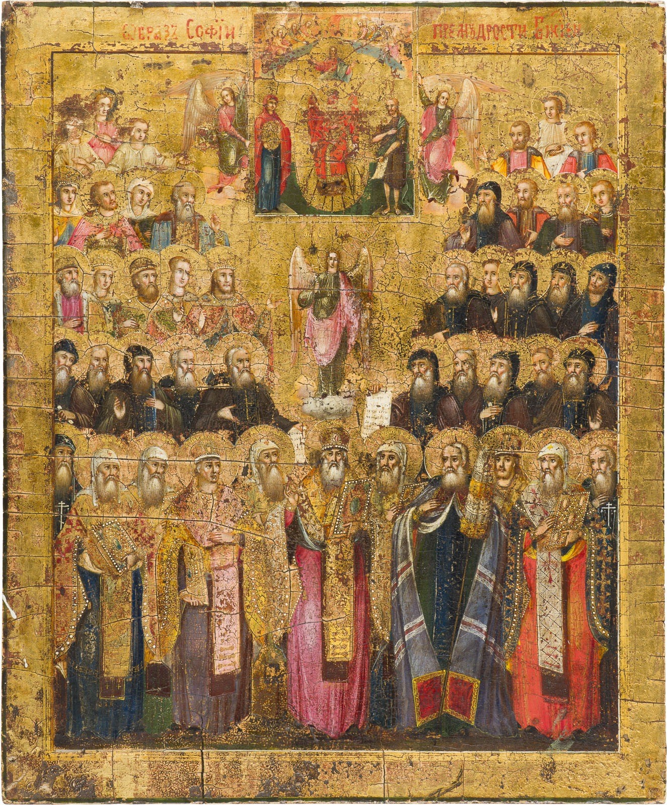 FEINE IKONE MIT SOPHIA, DER GÖTTLICHEN WEISHEIT UND DER SYNAXIS HEILIGER