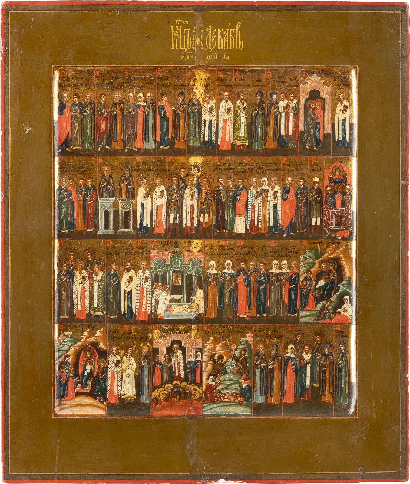 Verbund zweier Bretter mit zwei Rückseiten-Sponki. Kowtscheg, Eitempera auf Kreidegrund, Goldgrund. 31 x 26,6 cm. Rand min. rest.
