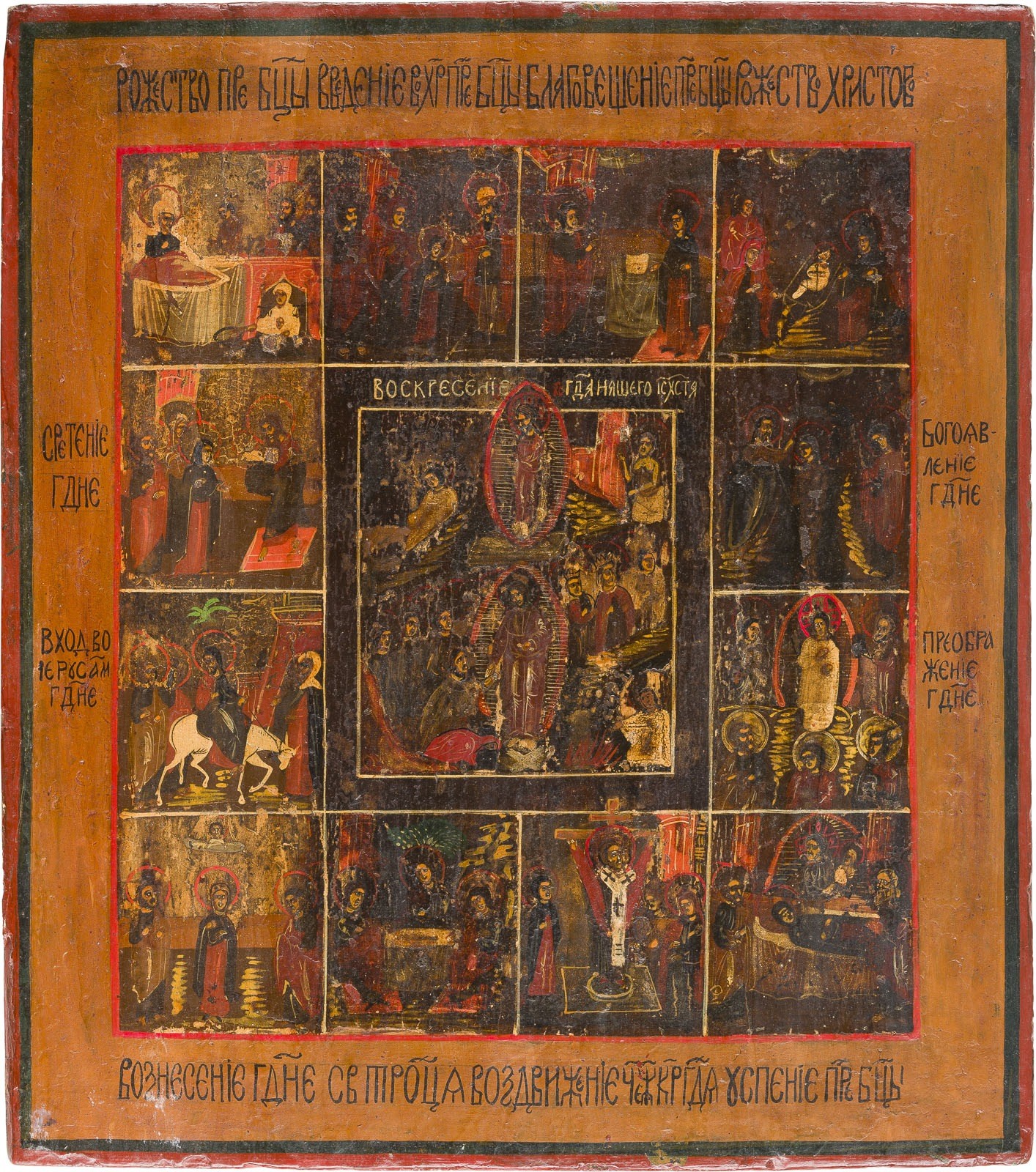Verbund mehrerer Bretter mit zwei Rückseiten-Sponki (verloren). Eitempera auf Kreidegrund. 35,2 x 31,3 cm. Restaurierungen.