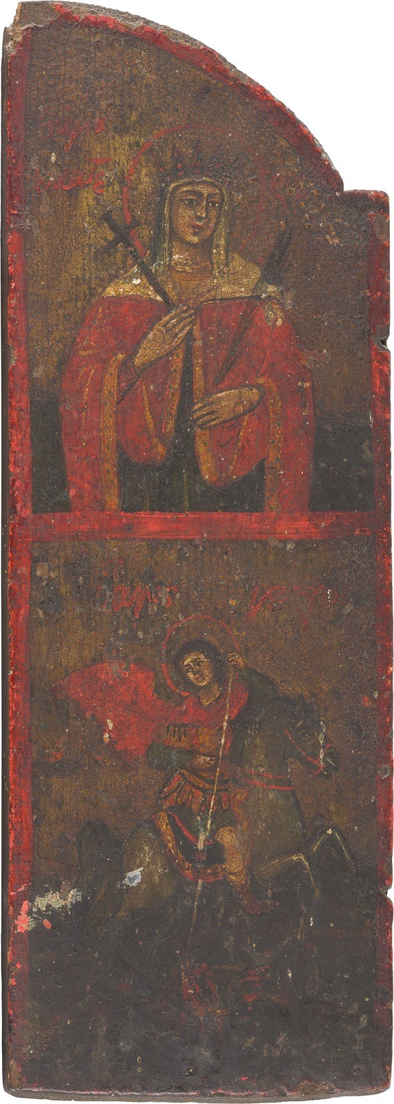 FLÜGEL EINES TRIPTYCHONS MIT DEN HEILIGEN KATHARINA UND GEORG DEM DRACHENTÖTER