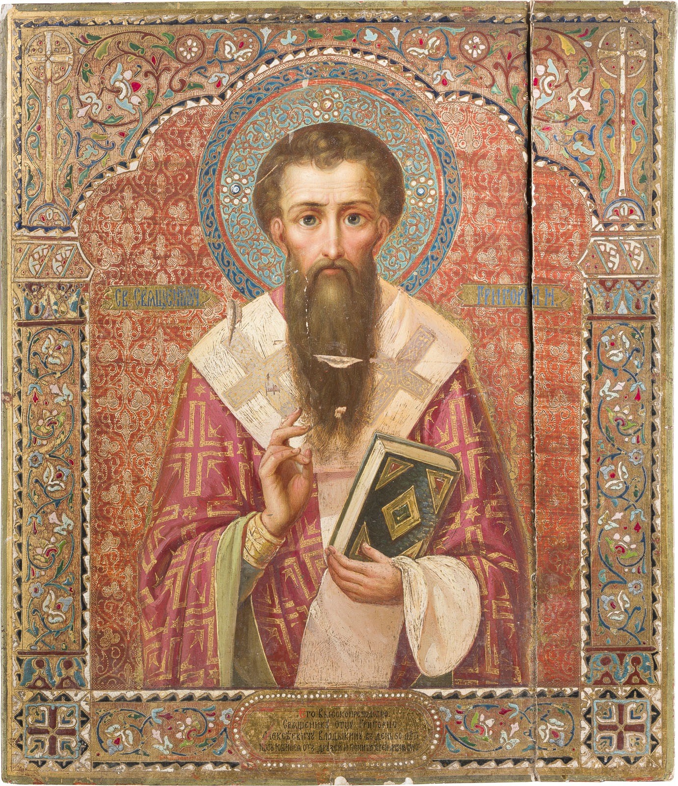 GROSSE DATIERTE UND FEINE IKONE MIT DEM HEILIGEN GREGOR DEM THEOLOGEN