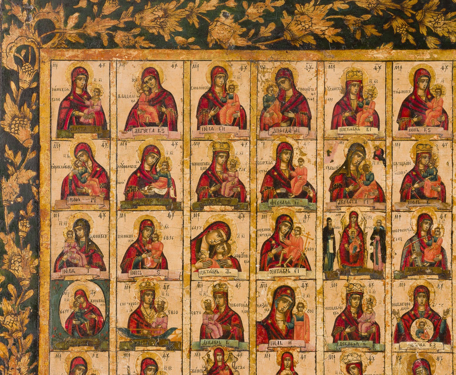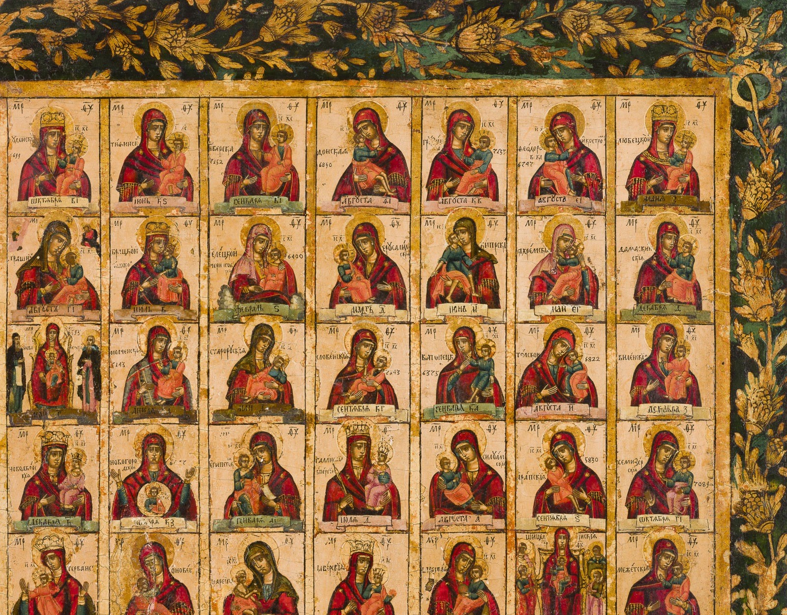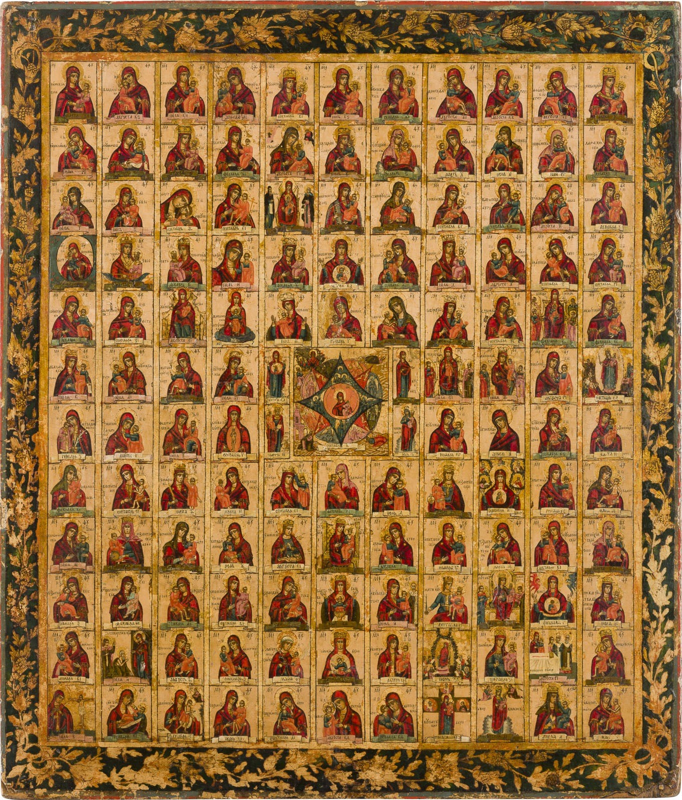 GROSSE DOPPELSEITIG BEMALTE IKONE: 131 GNADENBILDER DER GOTTESMUTTER SOWIE PROPHET ELIAS MIT SZENEN AUS SEINEM LEBEN