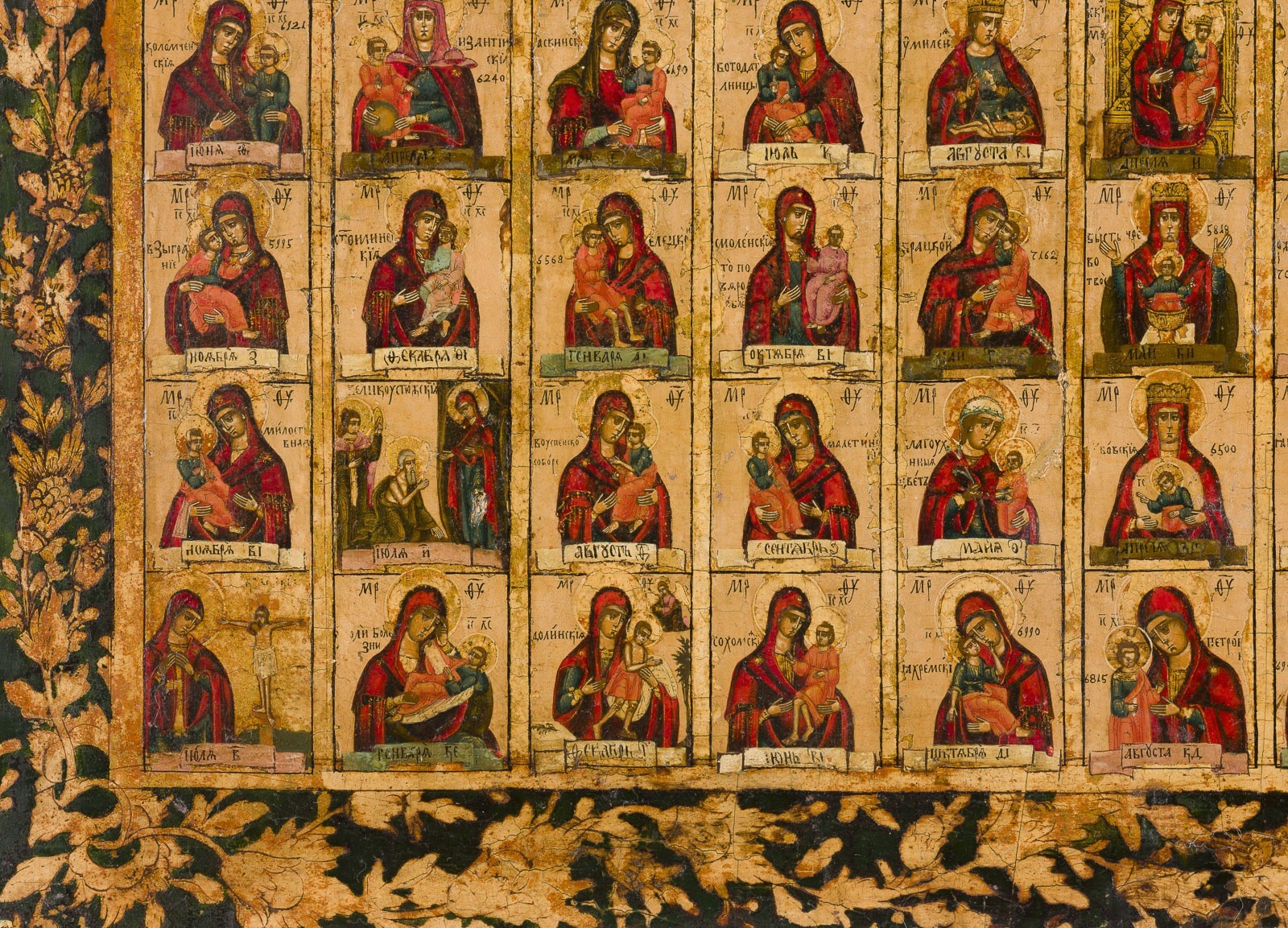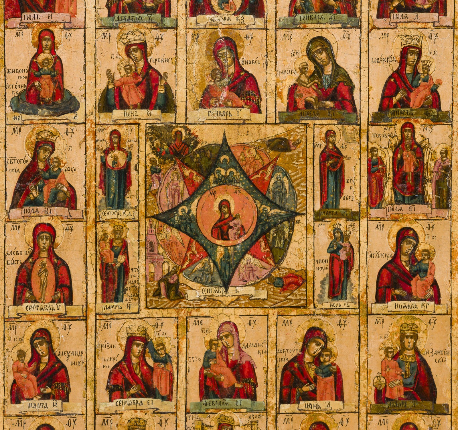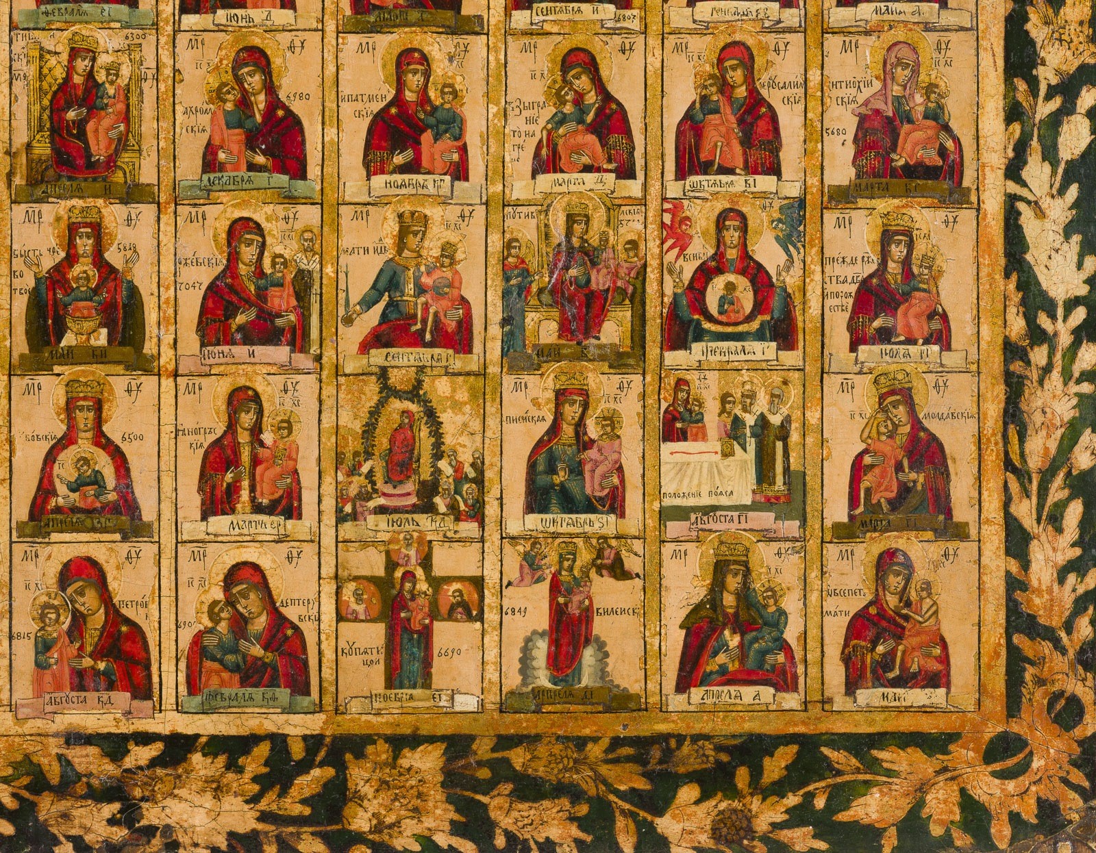 GROSSE DOPPELSEITIG BEMALTE IKONE: 131 GNADENBILDER DER GOTTESMUTTER SOWIE PROPHET ELIAS MIT SZENEN AUS SEINEM LEBEN