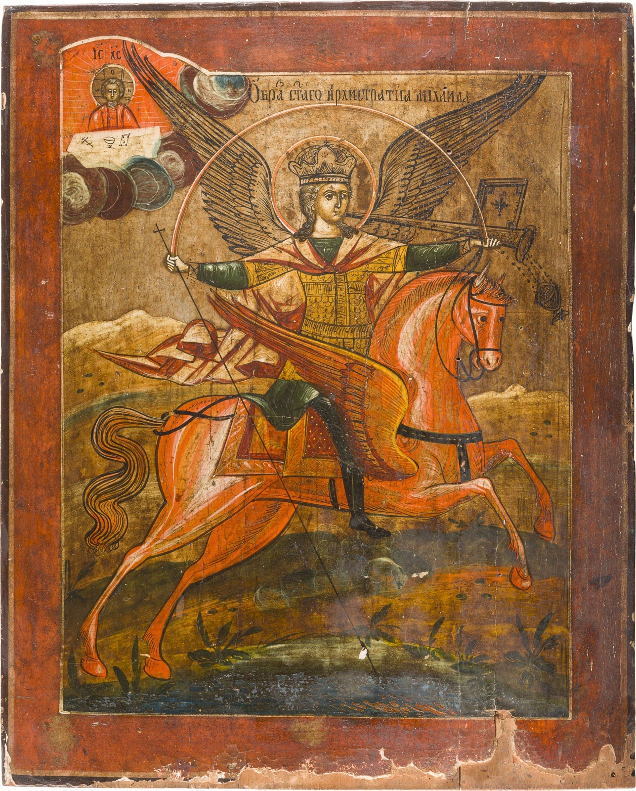 GROSSE IKONE MIT DEM ERZENGEL MICHAEL ARCHISTRATEGOS ALS APOKALYPTISCHER REITER