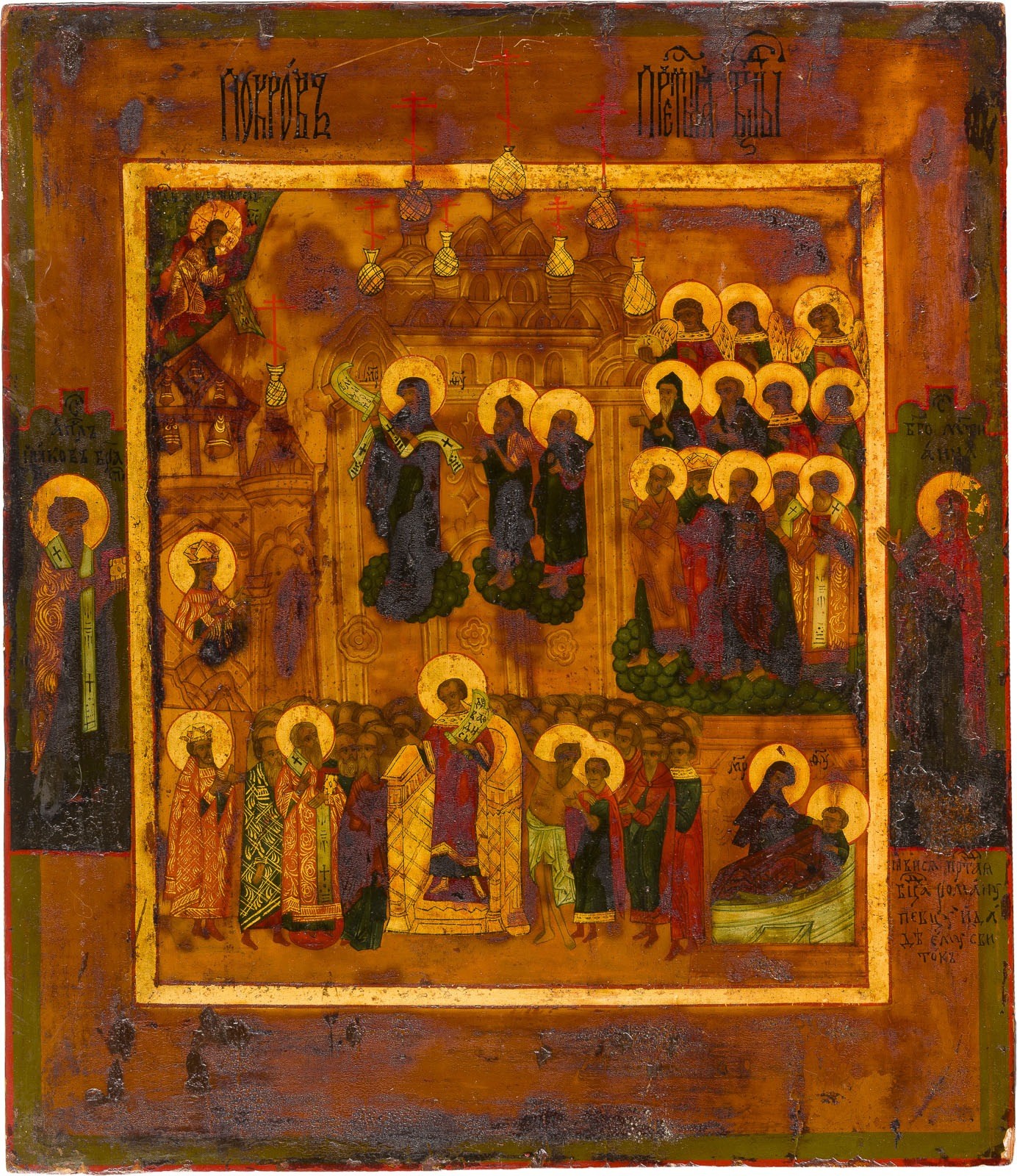 GROSSE IKONE MIT DEM SCHLEIERWUNDER DER GOTTESMUTTER (POKROW)