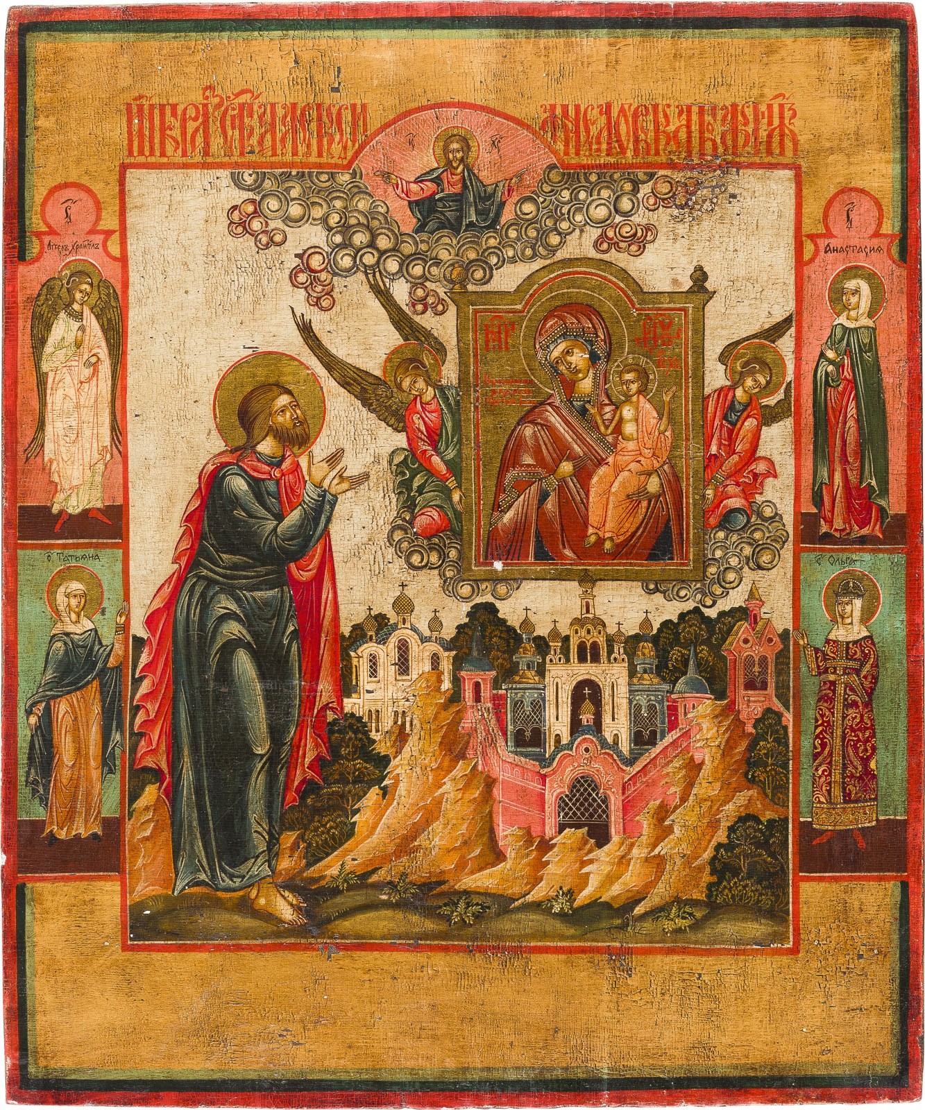 GROSSE IKONE MIT DER VEREHRUNG DER GOTTESMUTTER-IKONE DURCH EINEN HEILIGEN