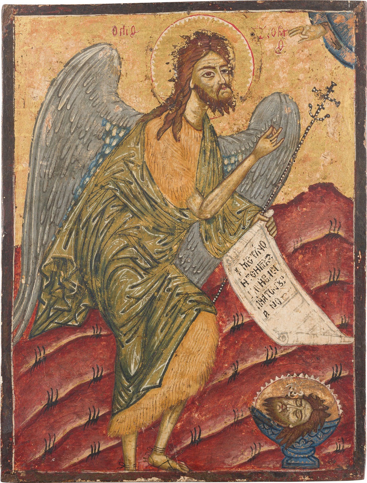GROSSE IKONE MIT JOHANNES DEM VORLÄUFER ALS ENGEL DER WÜSTE