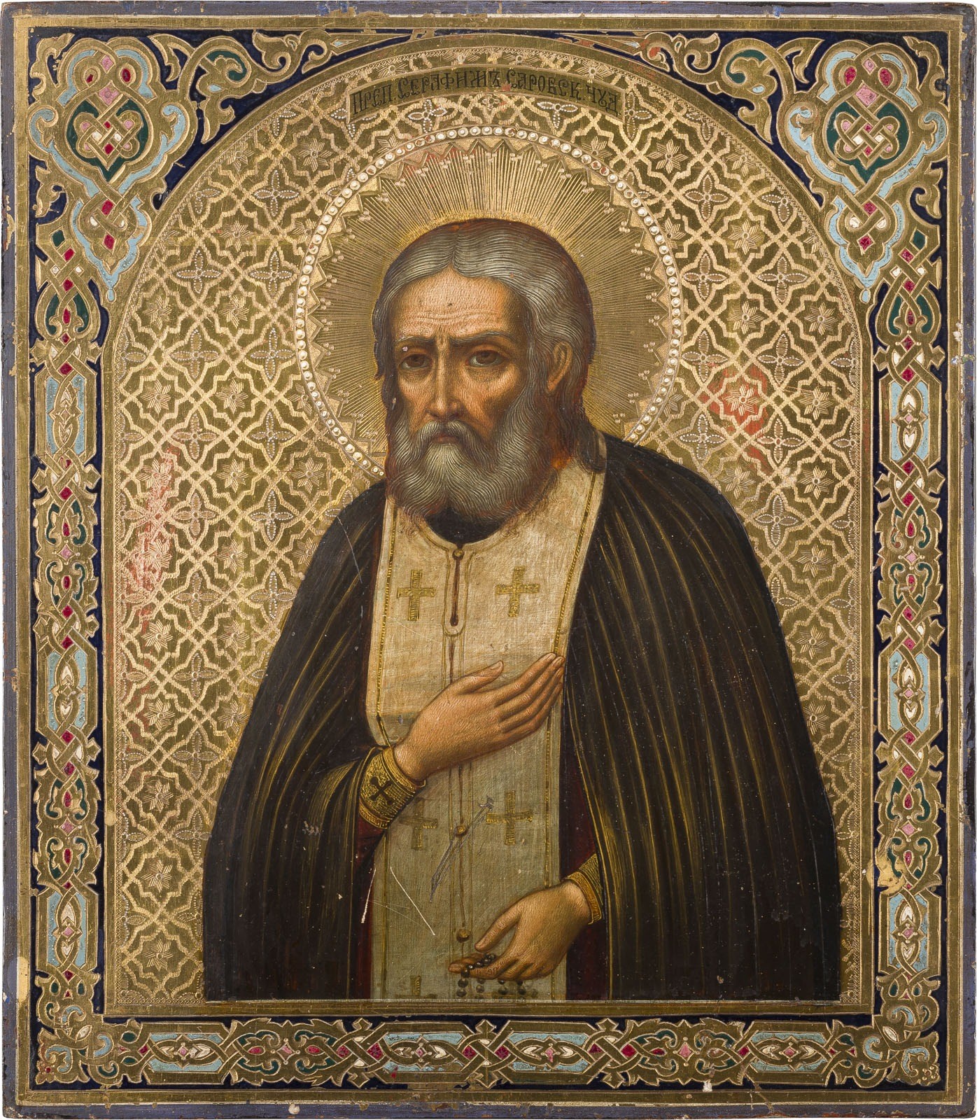 GROSSE UND FEINE IKONE MIT DEM HEILIGEN SERAFIM VON SAROW