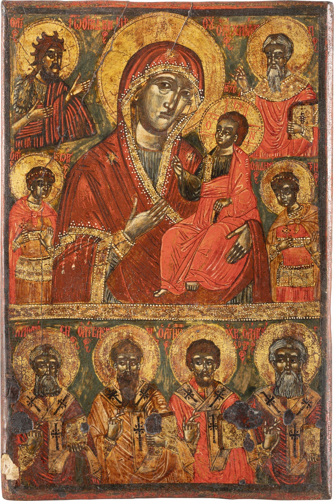 GROSSE ZWEIFELDER-IKONE MIT DER GOTTESMUTTER HODEGETRIA UND AUSGEWÄHLTEN HEILIGEN