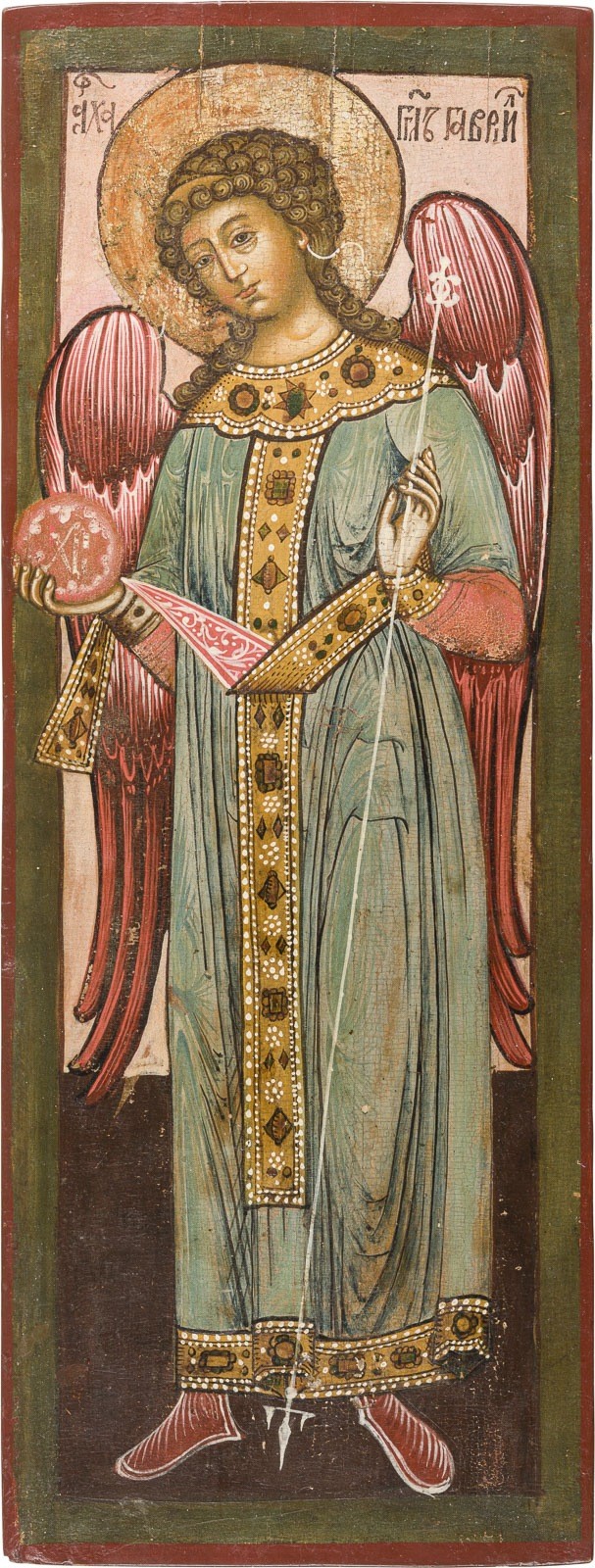 GROSSFORMATIGE IKONE MIT DEM ERZENGEL GABRIEL AUS EINER KIRCHEN-IKONOSTASE