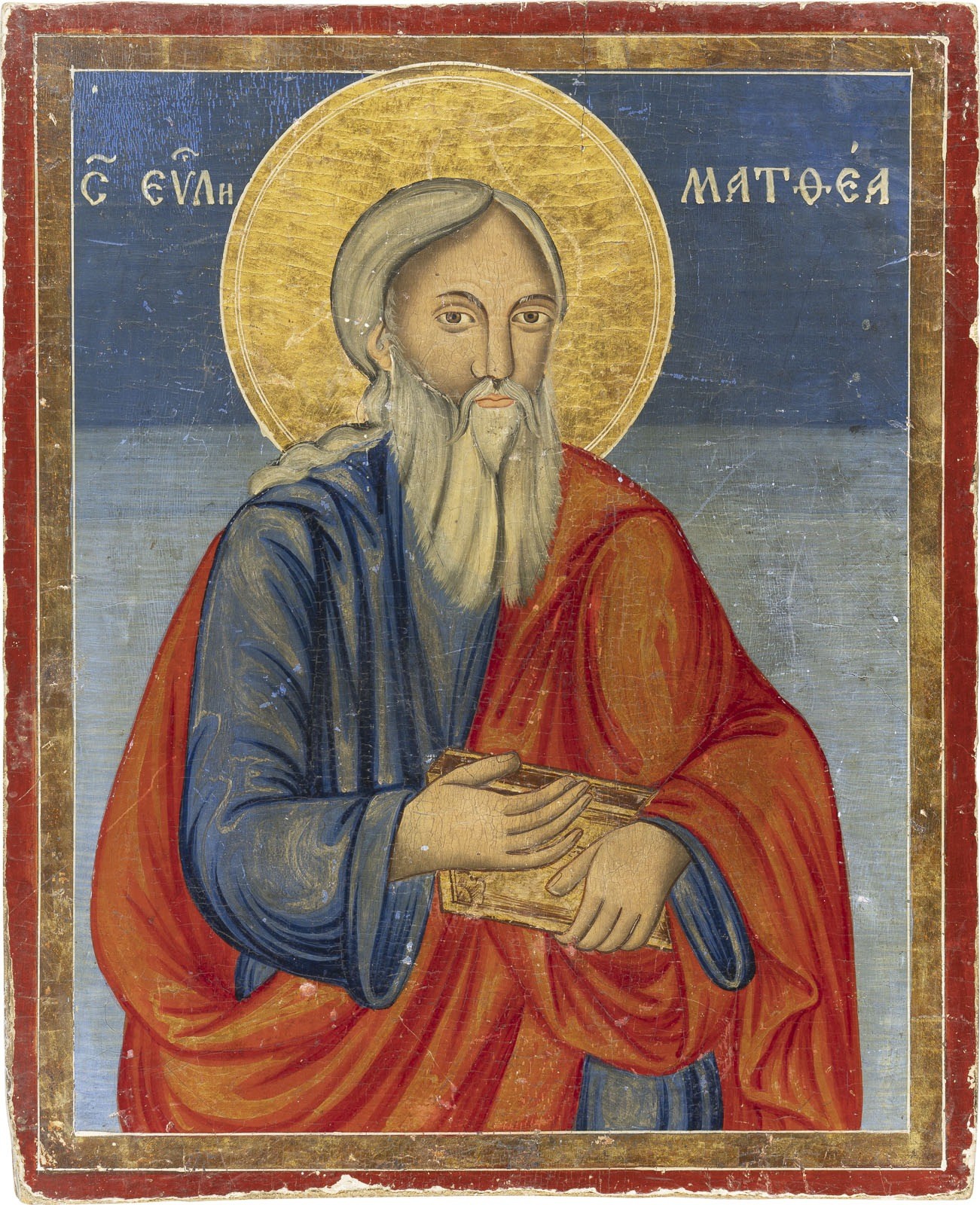 GROSSFORMATIGE IKONE MIT DEM EVANGELISTEN MATTHÄUS