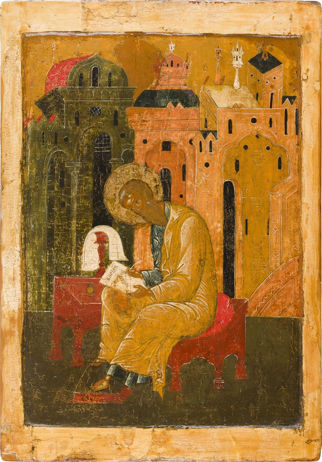 GROSSFORMATIGE IKONE MIT DEM EVANGELISTEN MATTHÄUS AUS EINER KÖNIGSTÜR