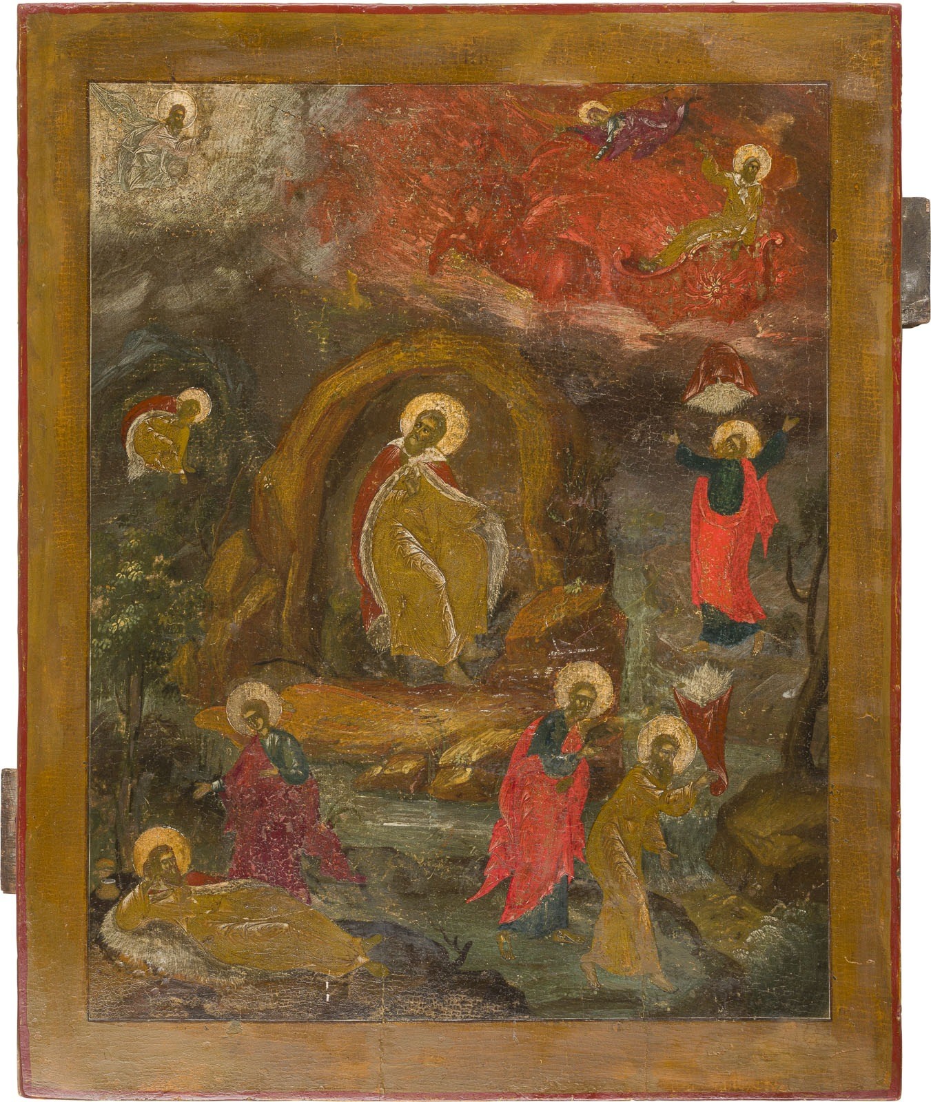 GROSSFORMATIGE IKONE MIT DEM PROPHETEN ELIAS UND SEINER FEURIGEN HIMMELFAHRT