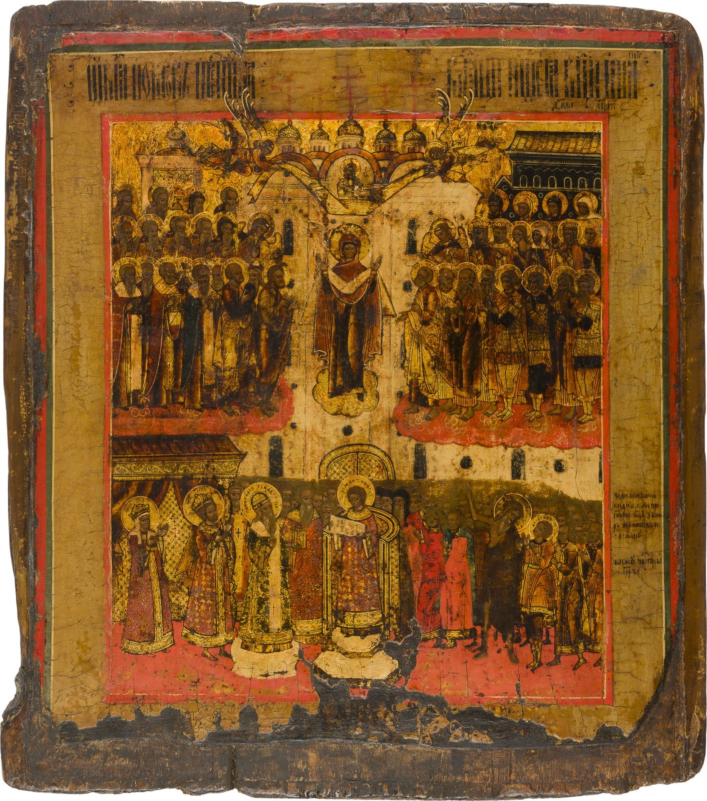 GROSSFORMATIGE IKONE MIT DEM SCHLEIERWUNDER (POKROW)