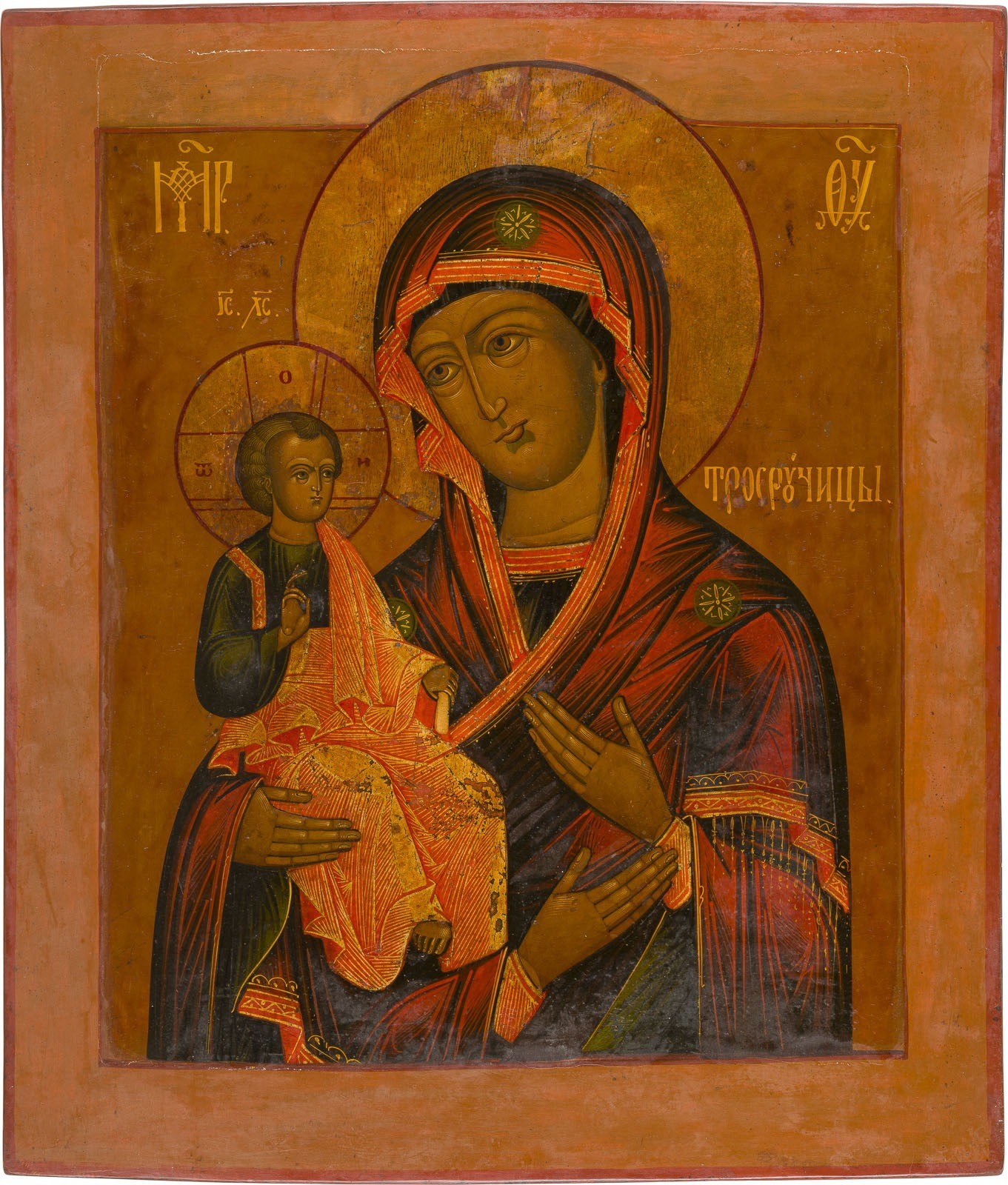 GROSSFORMATIGE IKONE MIT DER DREIHÄNDIGEN GOTTESMUTTER (TRICHEIROUSA)